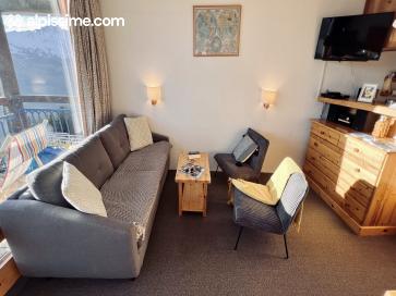 Appartement tout confort et chaleureux de type T2bis (chambre + grande alcôve) avec belle pièce de vie et grand balcon vue vallée baigné de soleil (expo Sud-Ouest).