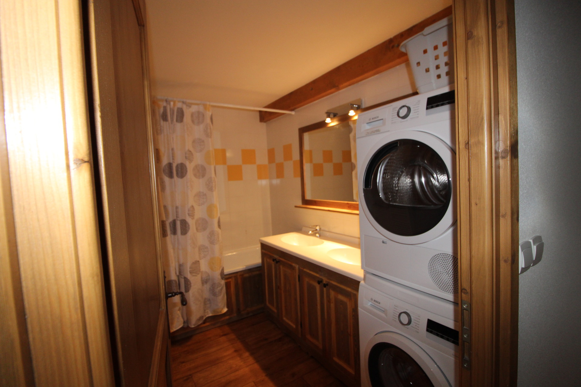 Salle de Bain : baignoire, lavabo. WC indépendants. Lave linge et sèche linge