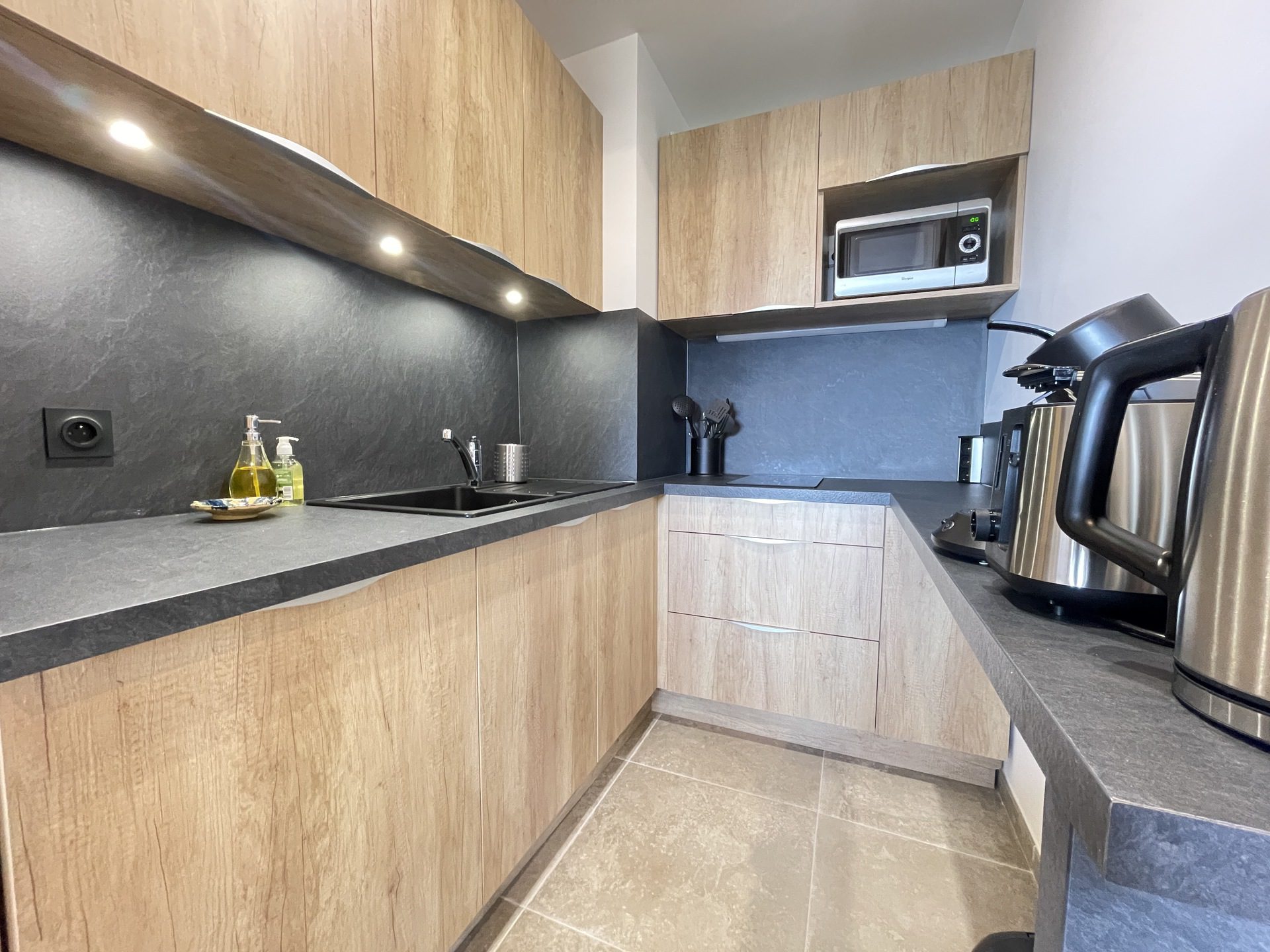 Ce bel appartement neuf d'environ 35 m2 se situe a proximite de la place du cernix. Il dispose d'une terrasse meublee orientee Sud, ideale pour savourer des dejeuners en plein air. Il est concu pour accueillir quatre personnes , idealement 2 adultes et 2 enfants. Situe au 3eme etage, l'appartement offre une vue degagee sans vis a vis sur la chaine des Aravis (residence avec ascenseur). La residence Canopee, composee de 2 batiments, est situee a environ 500m a pied des commerces de proximite et du telesiege du Cernix. Les vacanciers apprecieront egalement la navette gratuite situee a seulement 100 metres, facilitant l'acces aux pistes.