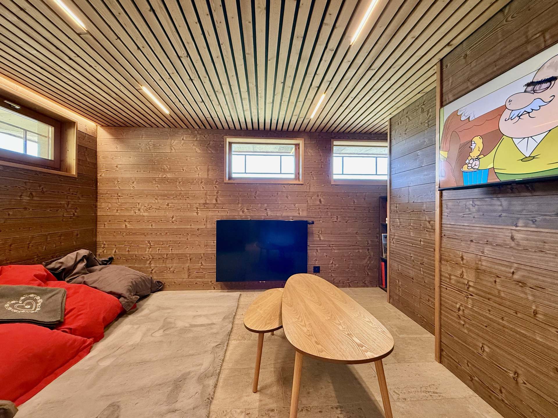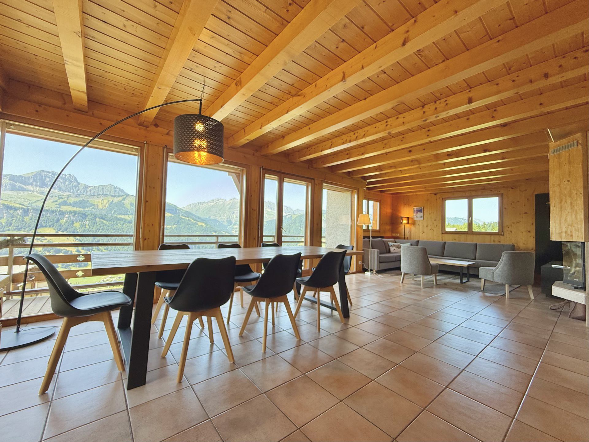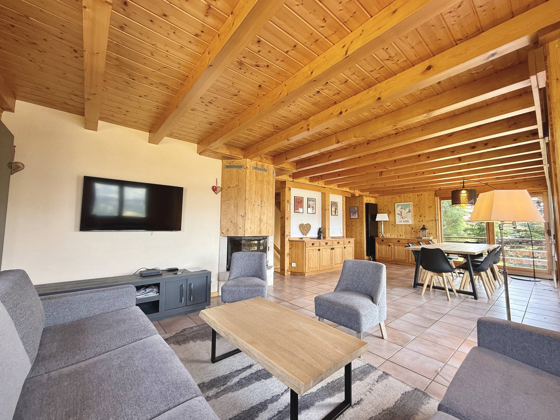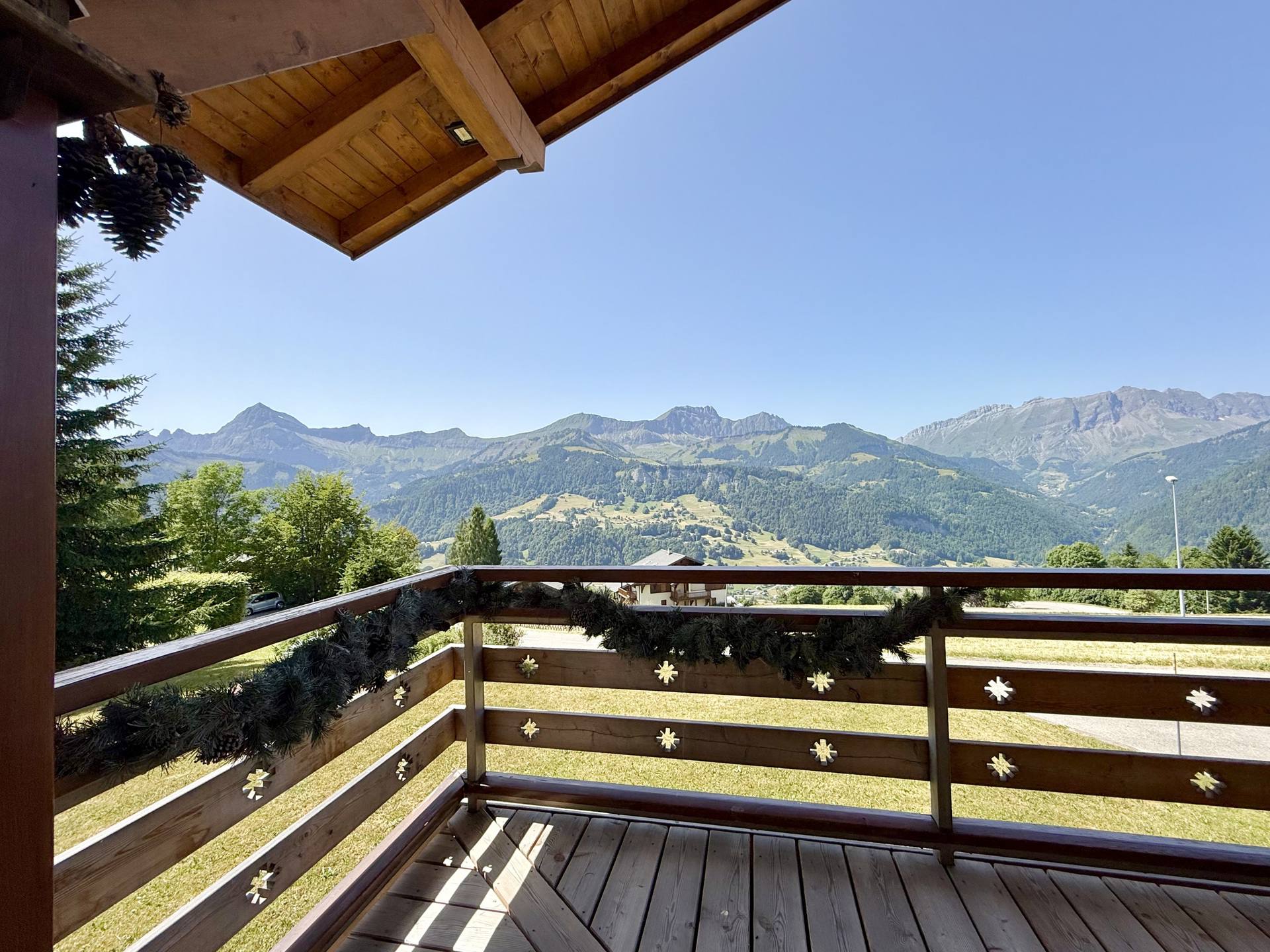 Le chalet beneficie d'une bonne exposition et offre de somptueuses vues sur les chaines de montagnes allant du Mont Charvin a la chaine des Aravis.