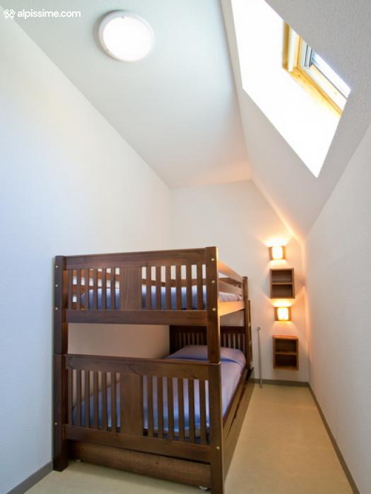L'appartement se compose d'un séjour accueillant un canapé convertible pour 2 personnes, d'une chambre accueillant un lit double, d'une cabine proposant 2 lits superposés et d'une salle de bain. Cuisine équipée avec lave-vaisselle, réfrigérateur, cafetière, grille-pain, bouilloire, plaques vitrocéramiques, micro-ondes grill.
