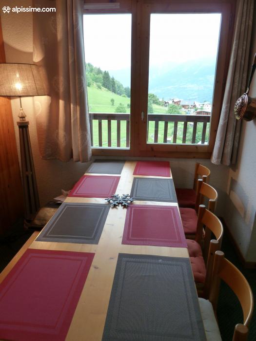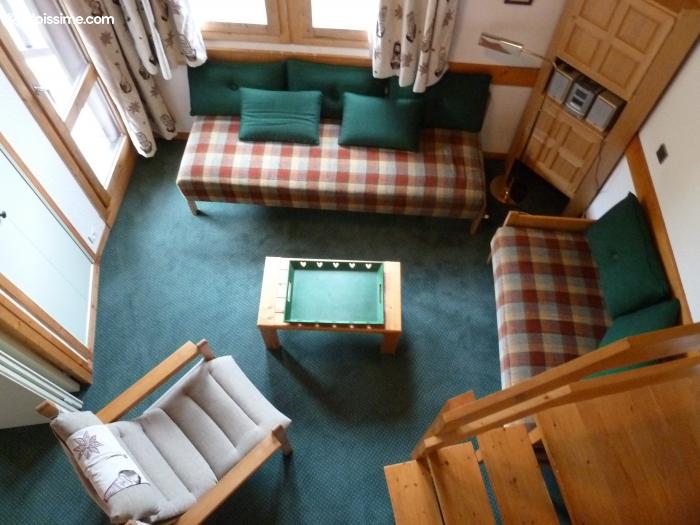 ETE / HIVER - Dans la station de Montchavin, sur le départ des pistes avec vue imprenable sur la station et sur la vallée, face à l'école de skis avec départ du télésiège à 100 m, et à 200 mètres du coeur du village. Grand appartement en duplex 10 places clair, soigné et confortable. Accès direct à La Plagne et aux Arcs. Label "station Famille Plus". Piscine municipale/Centre aquatique payant été/hiver au pied de l'immeuble.