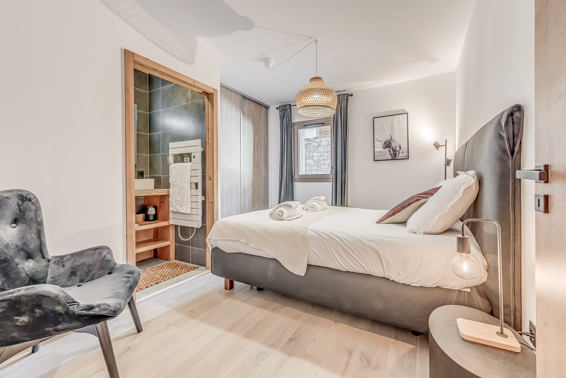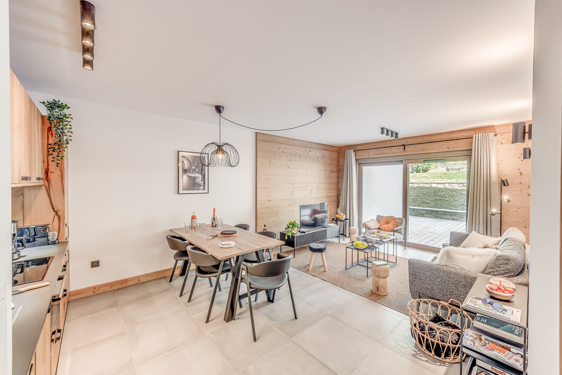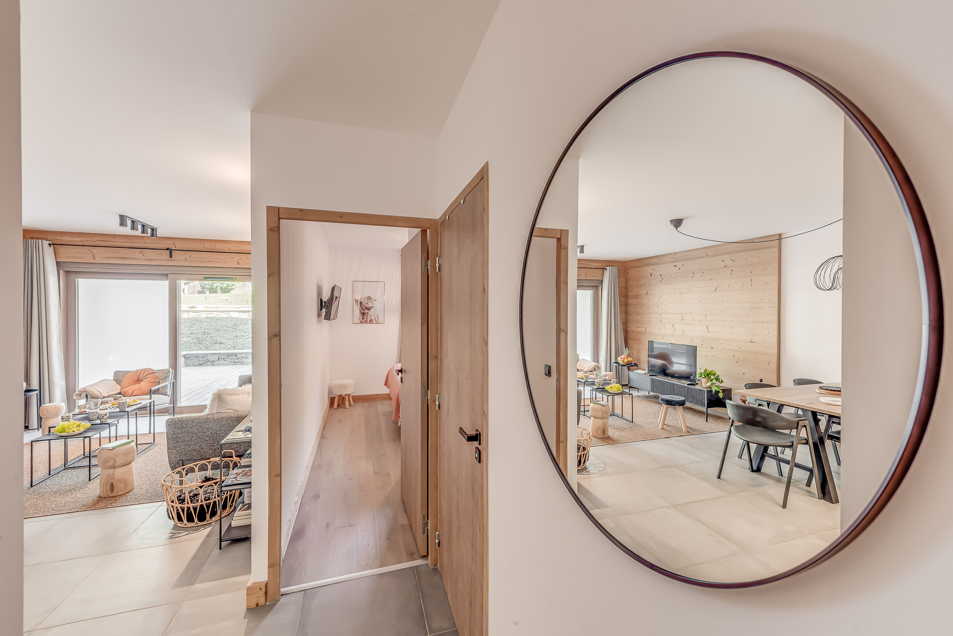 Appartement neuf au rez de chaussee d'une toute nouvelle residence 4*, a proximite du centre Spa et piscine, et a 200 m du centre du village et du depart des pistes. L'appartement est parfait pour 6 personnes