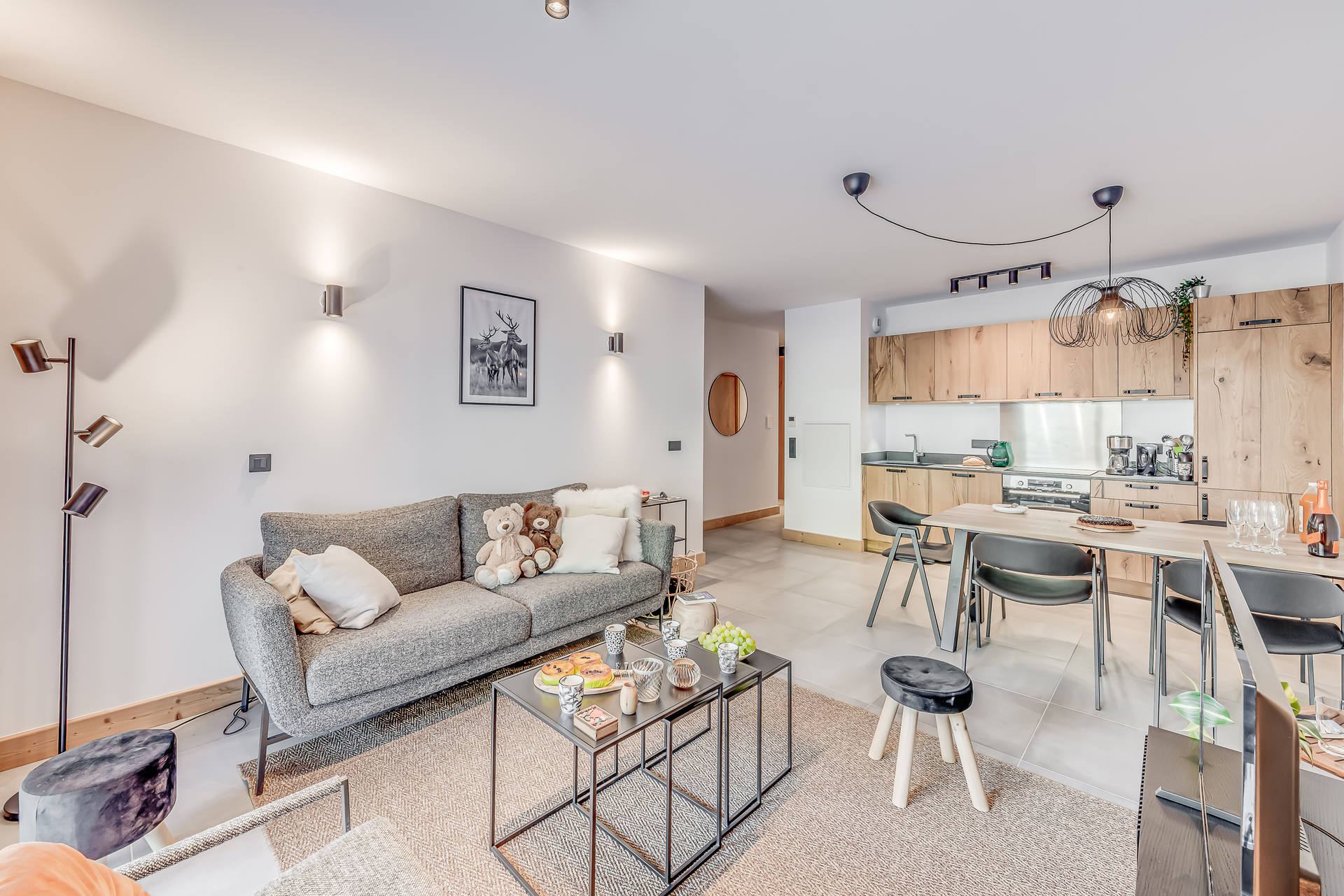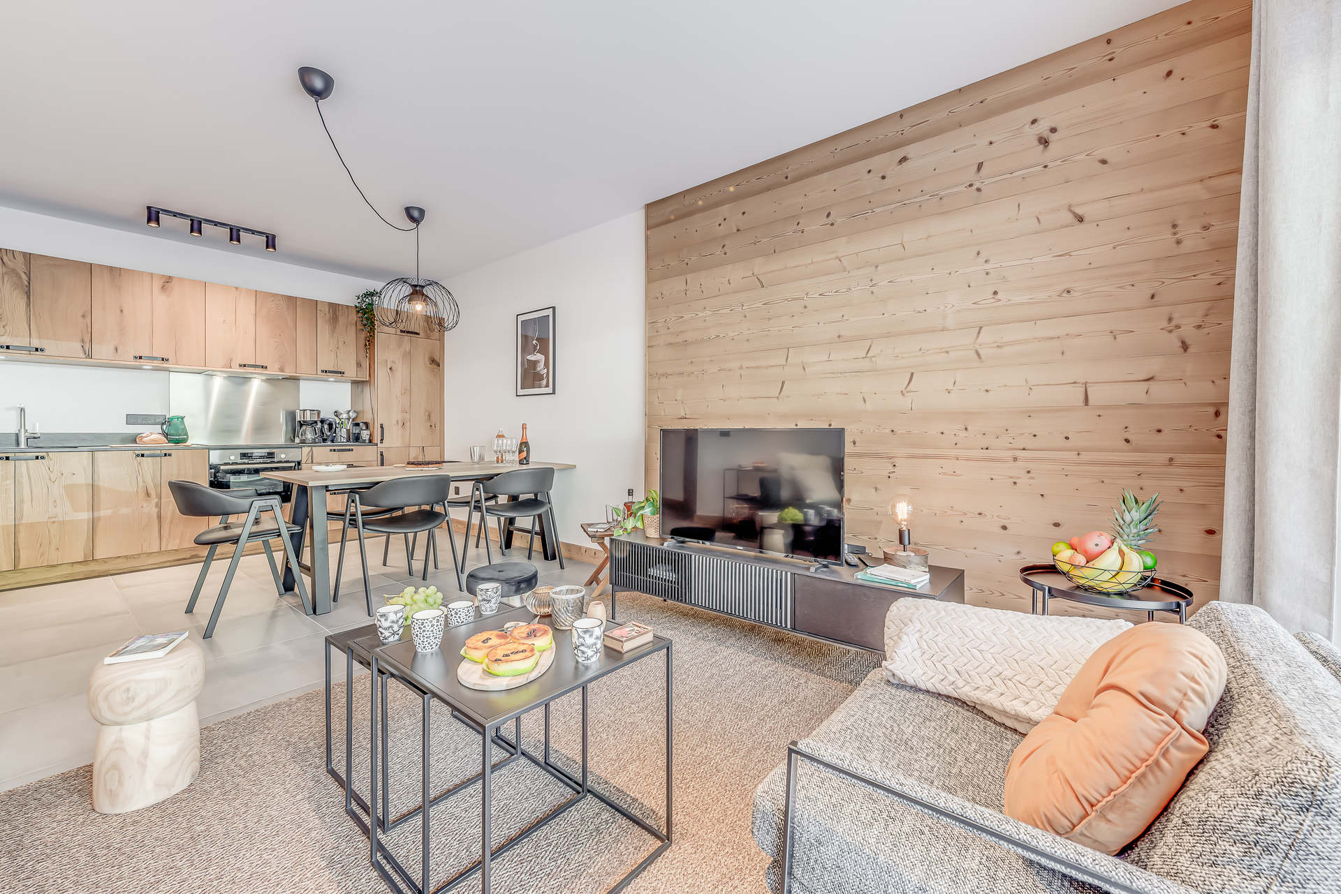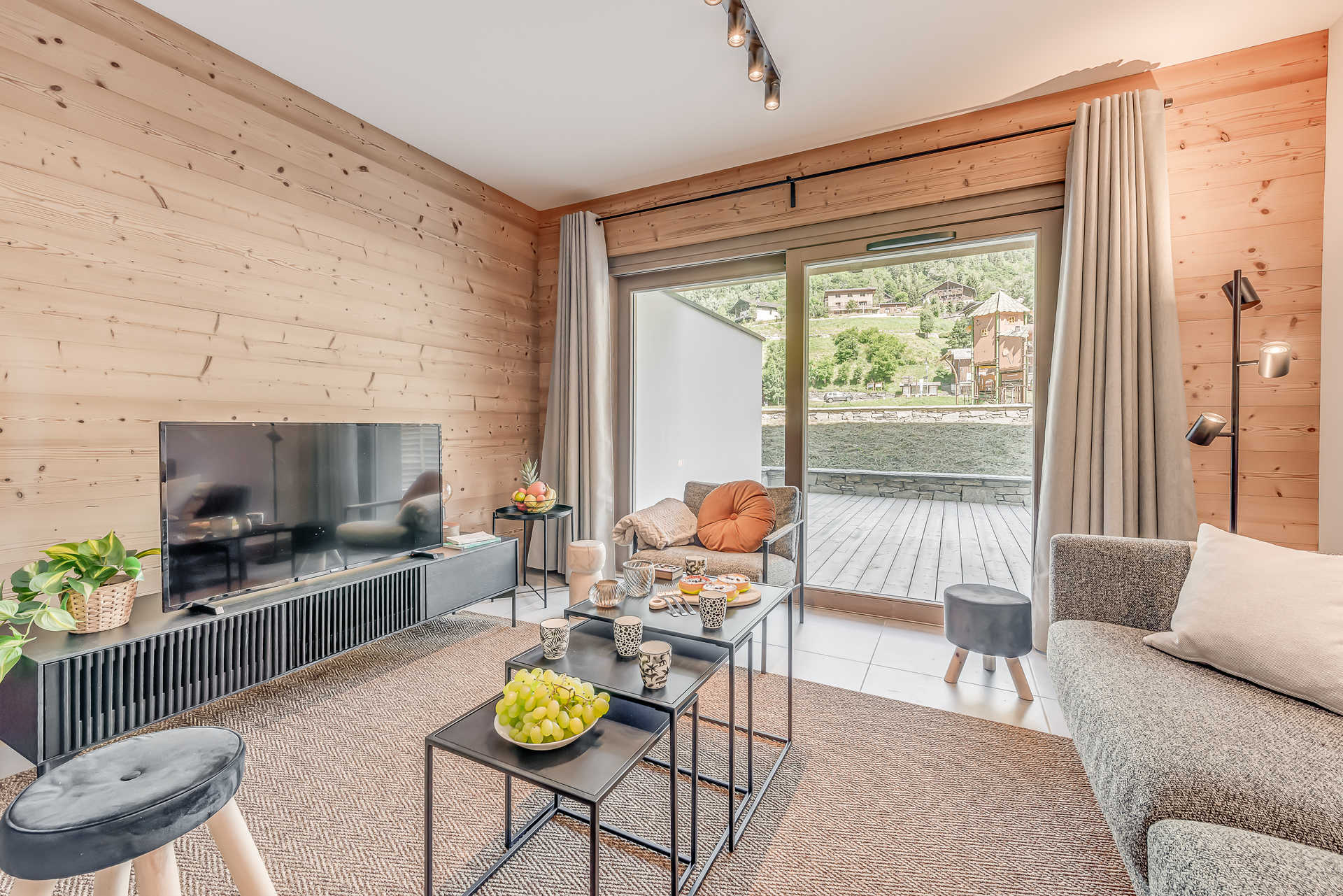 Appartement neuf au rez de chaussee d'une toute nouvelle residence 4*, a proximite du centre Spa et piscine, et a 200 m du centre du village et du depart des pistes. L'appartement est parfait pour 6 personnes