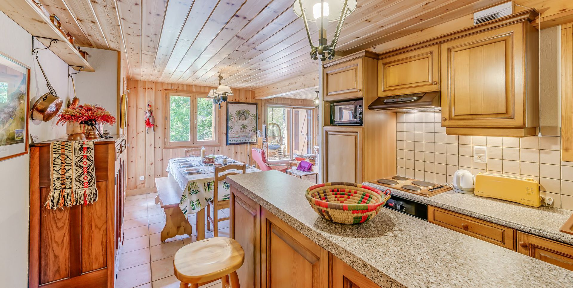 - une kitchenette ?quip?e avec plaques ?lectriques, frigo, four, four micro-ondes et lave-vaisselle,