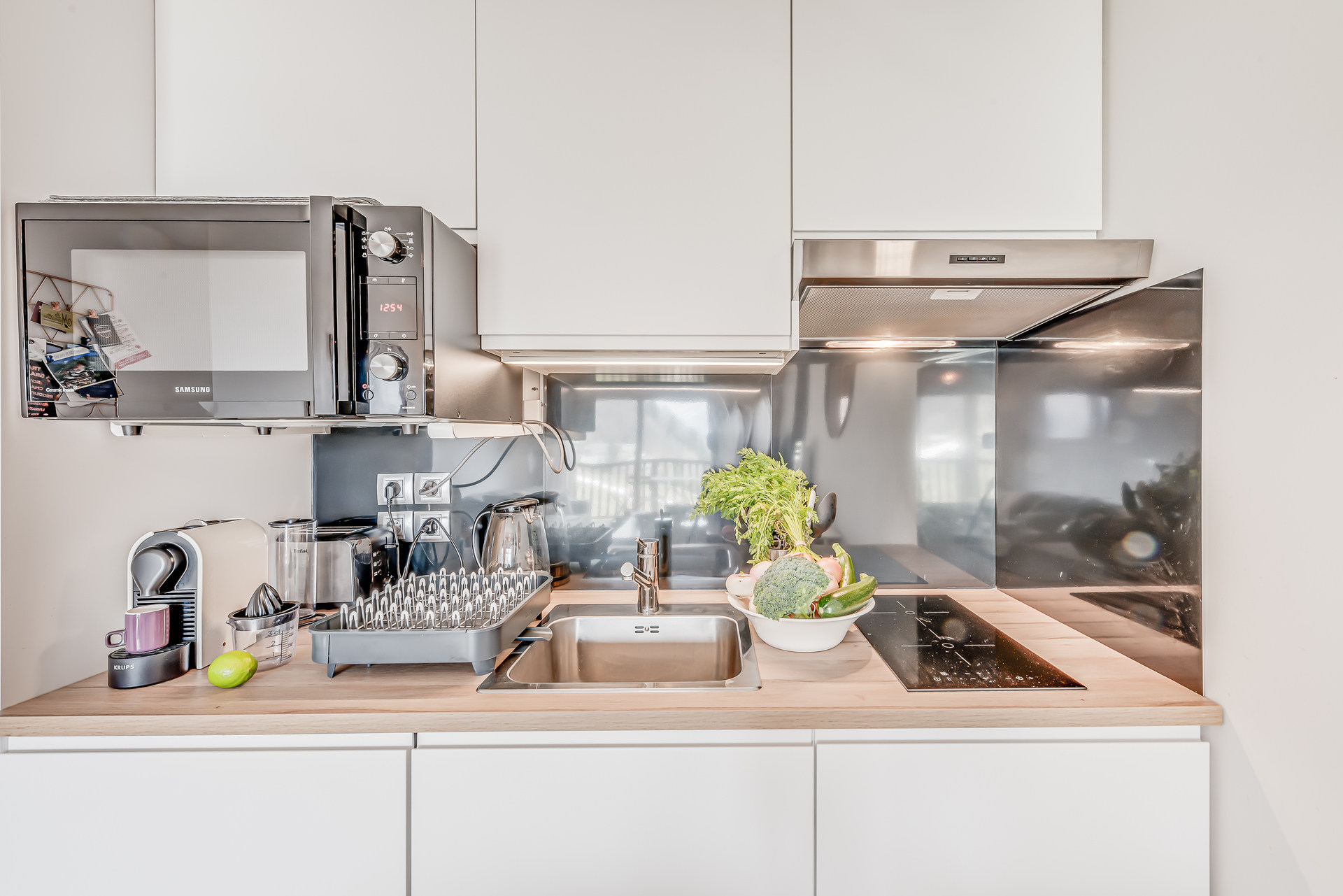 - Cuisine complètement équipée : réfrigérateur avec partie congélation, four combiné, lave vaisselle, plaques vitrocéramiques, cafetière, bouilloire, grille pain