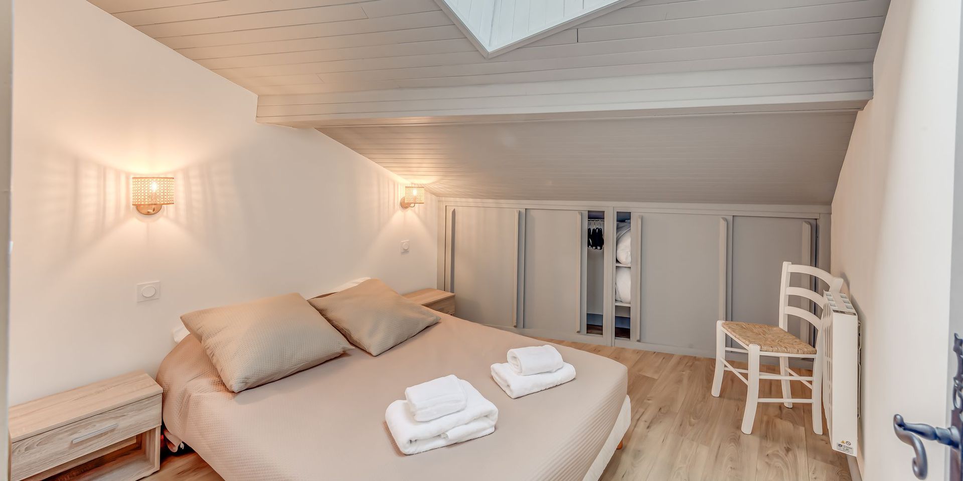 * une chambre avec un lit 2 pers. (140x190) couette, avec velux