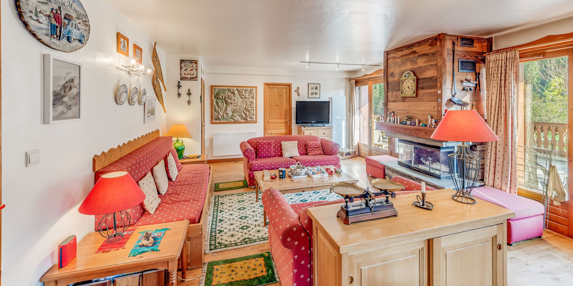 - Sejour/salon avec canapes, TV, cheminee, et sortie sur Terrasse SUD
