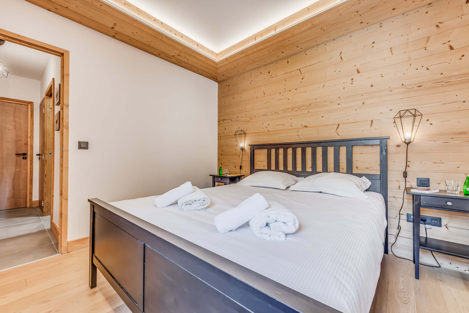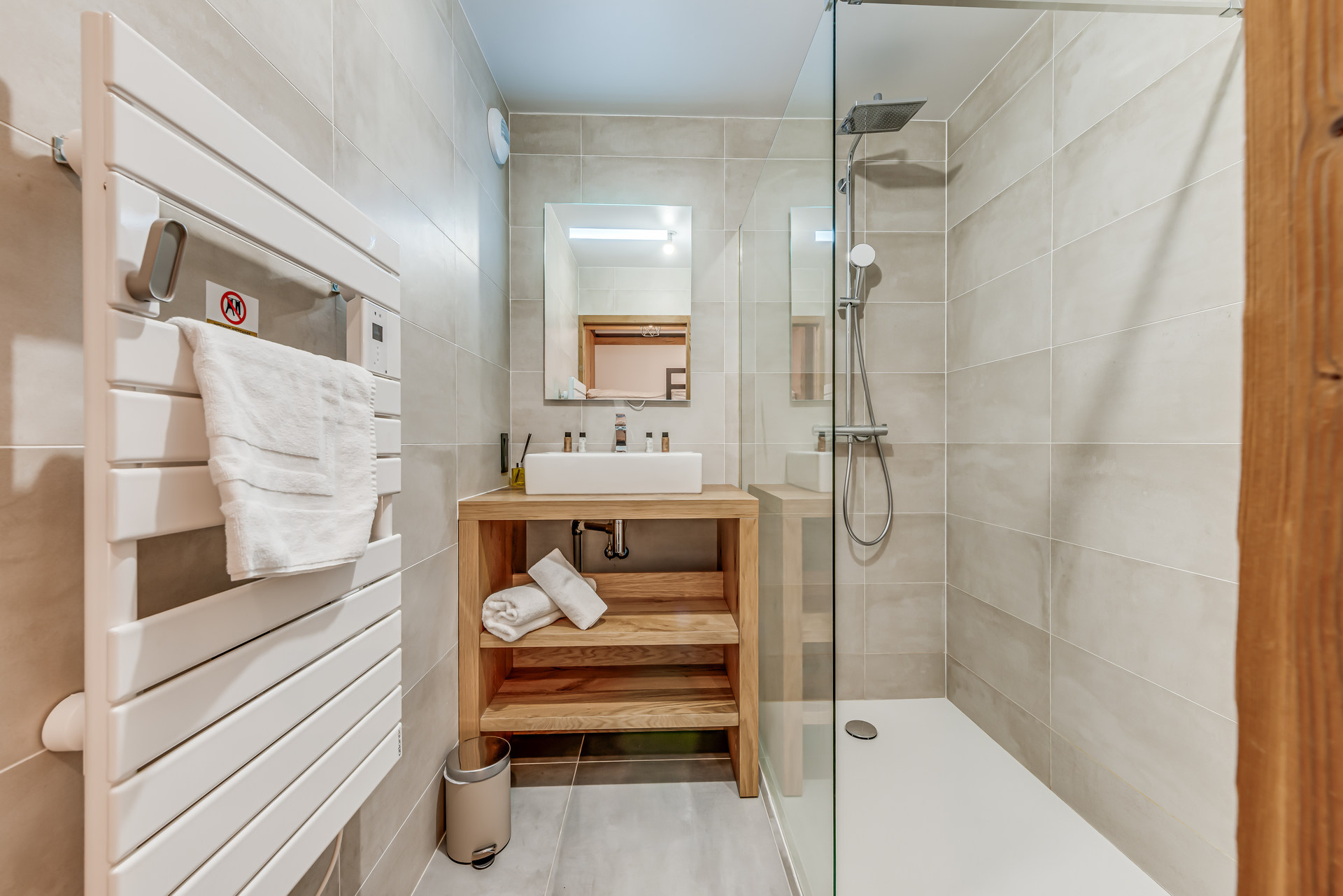 - 1 Suite familiale orientee NORD avec 1 chambre avec 1 lit double, 1 coin montagne avec lits superposes (2couchages) et 1 salle de bains avec douche et meuble vasque
