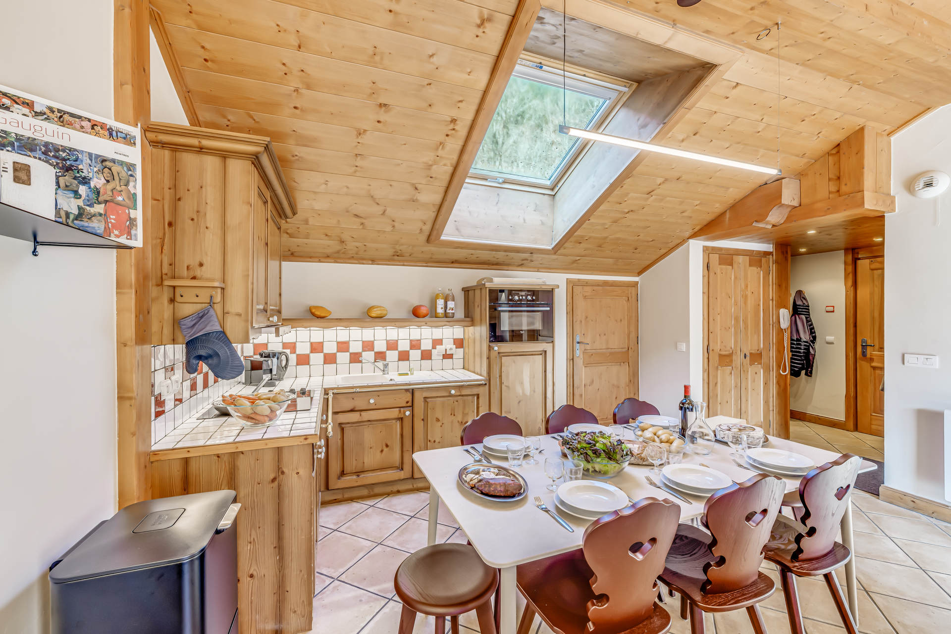 - 1 Cuisine equipee ouverte sur le sejour avec table de repas et chaises pour 8personnes