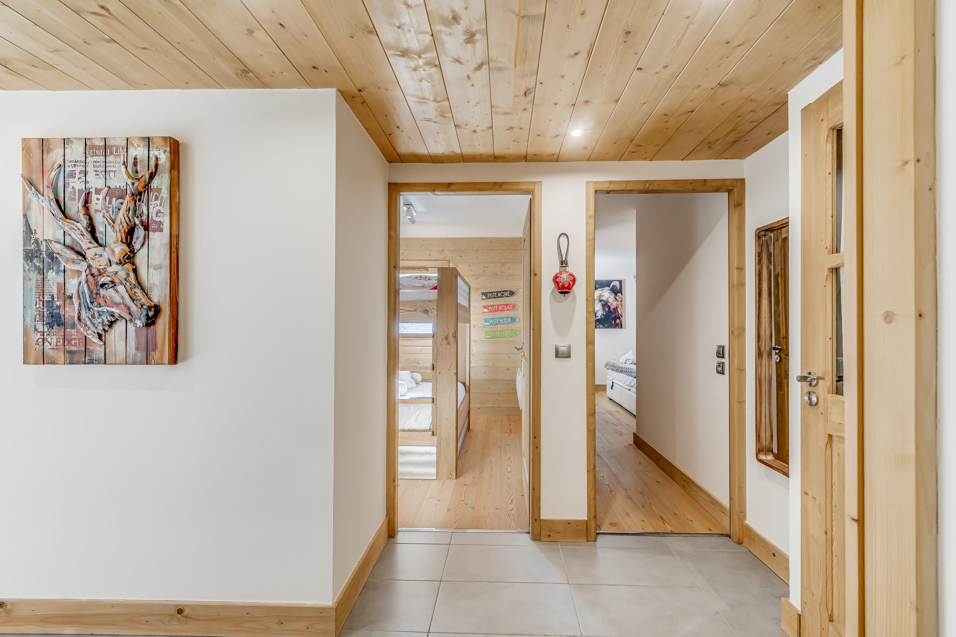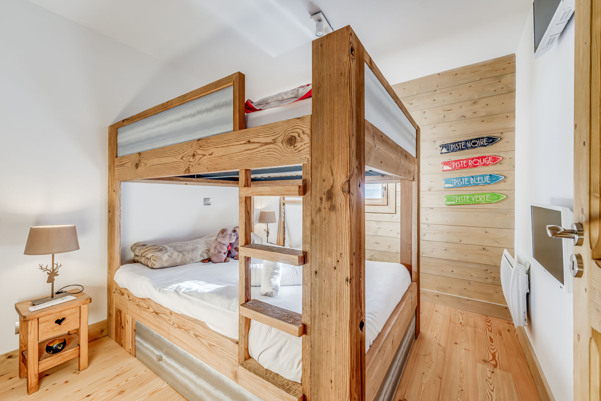 * Chambre 2 : 2 lits doubles superposes (140x90), placard de rangement et 2 TV ecran plat