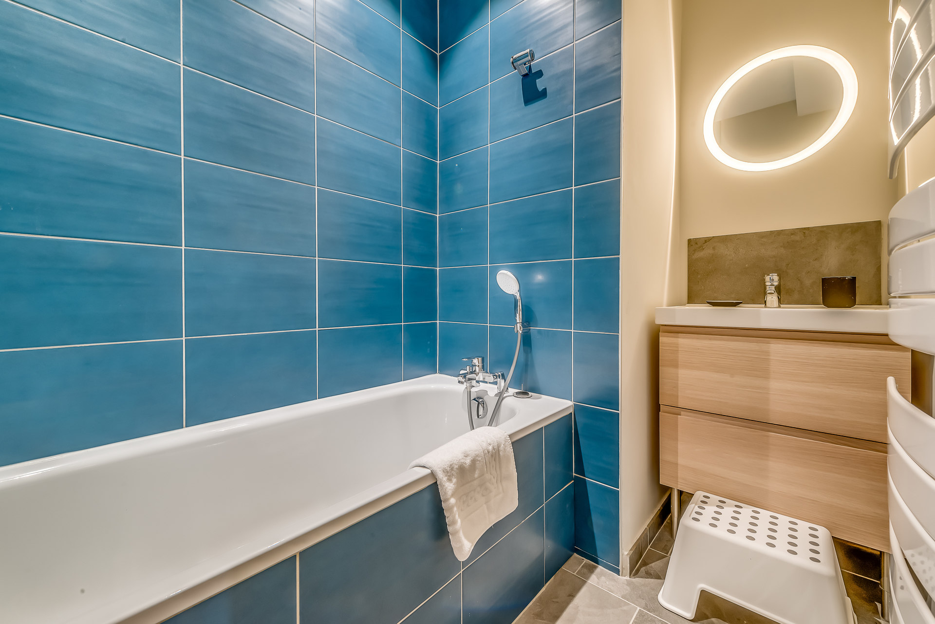 - 1 salle de douche, meuble vasques, avec un coin toilettes enfants