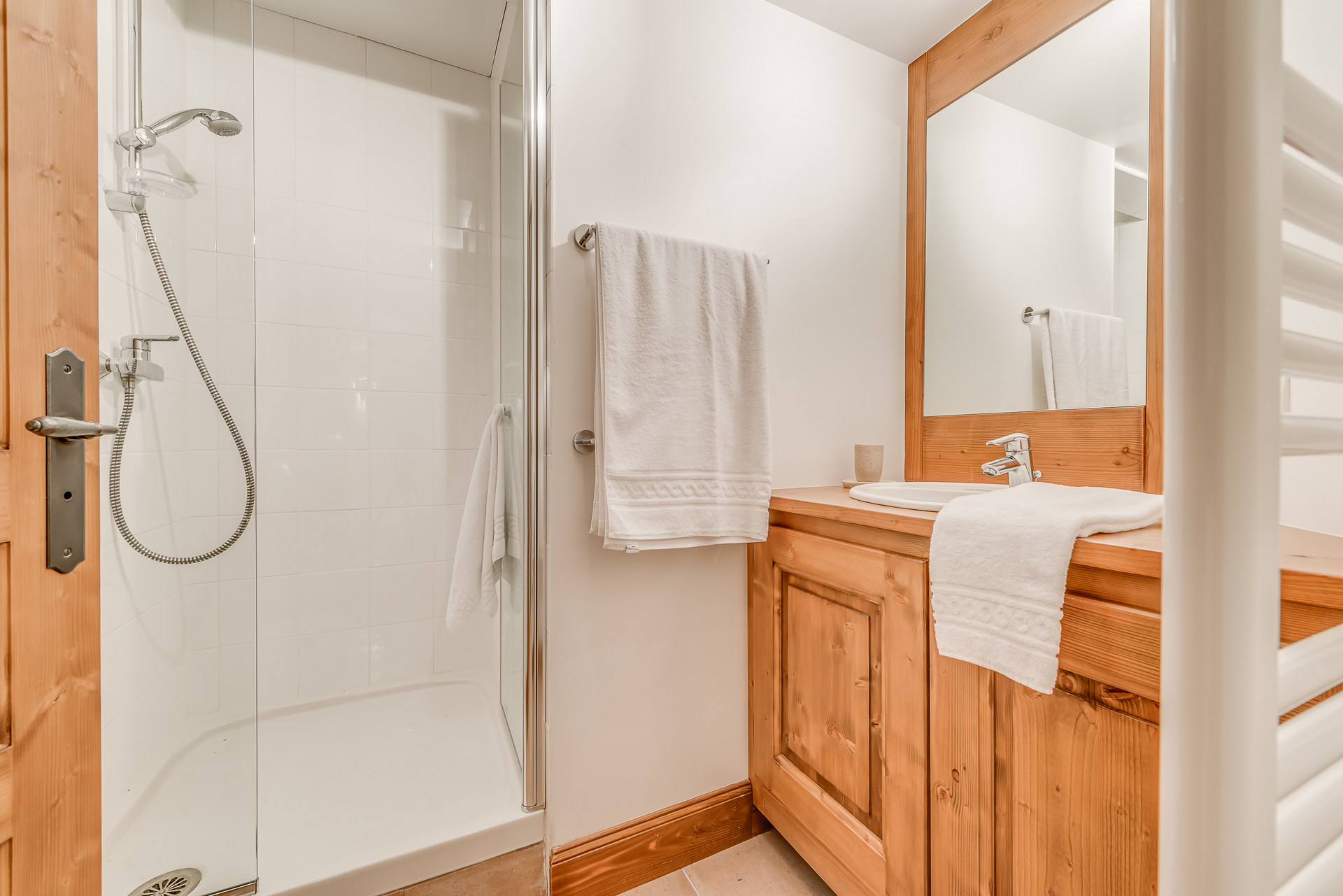 - 1 salle de douche, meuble vasque. Toilettes separees.