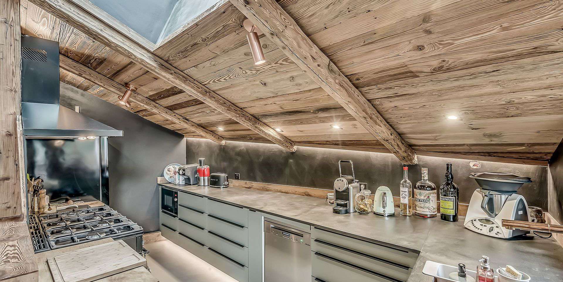 - grande cuisine ouverte sur le séjour toute équipée : frigo/congélateur, four électricque, four micro-onde, gazinière piano de 5 feux, lave-vaisselles...