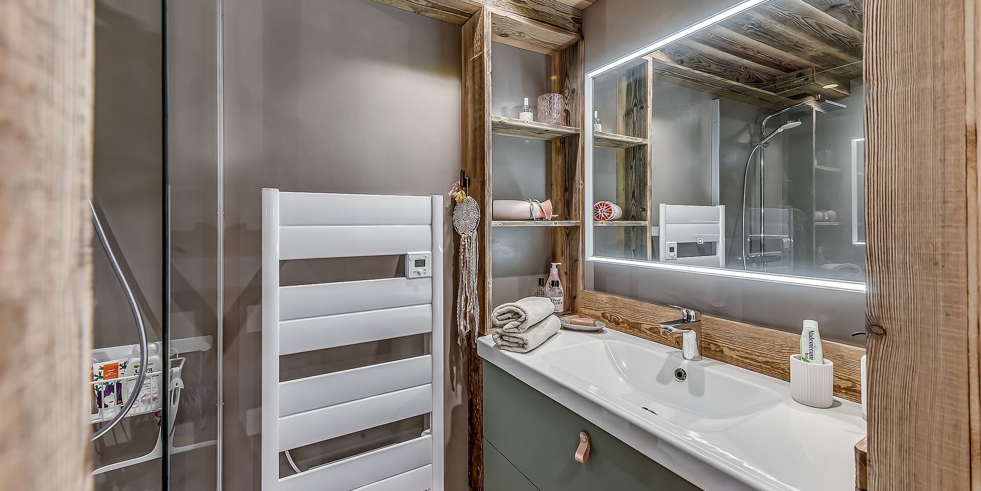- Entrée piéton et entrée skieurs avec banc, placards, sèche-chaussures électriques, ratelier à skis.