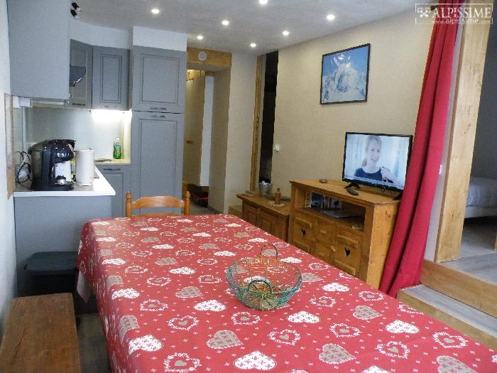 Résidence Les Lauzières, très agréable appartement entièrement rénové de 56m², vue Mt Blanc équipé pour 8/10 personnes, départ et retour "skis aux pieds", vous chaussez et déchaussez à la sortie de l'immeuble.