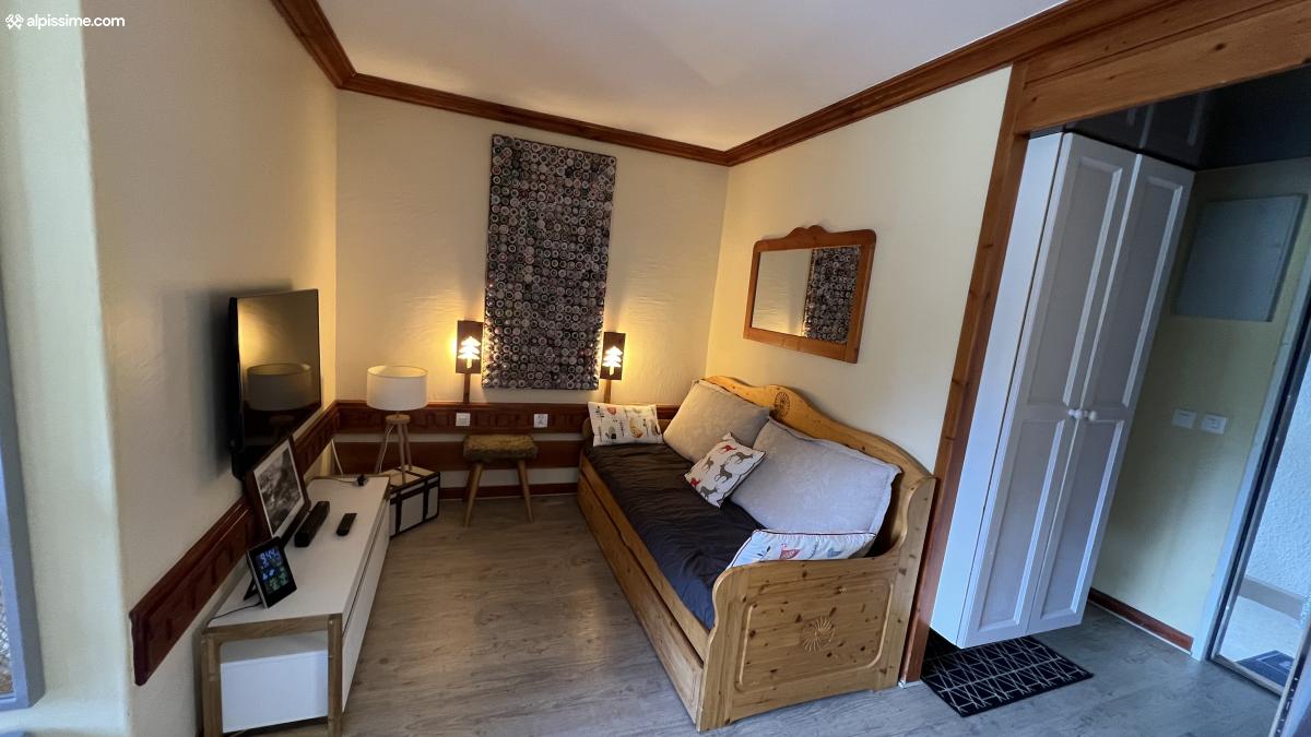 Une chambre séparée comprenant 1 lit double en 140, une alcôve avec lit gigogne et 1 canapé lit dans le séjour. Télévision à écran plat.