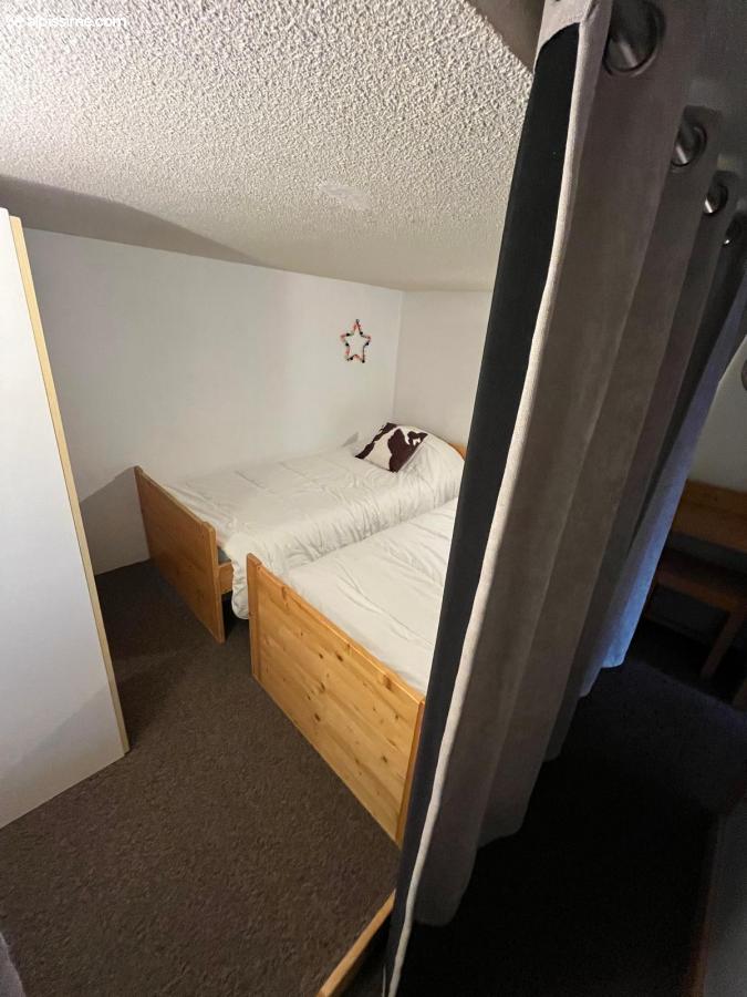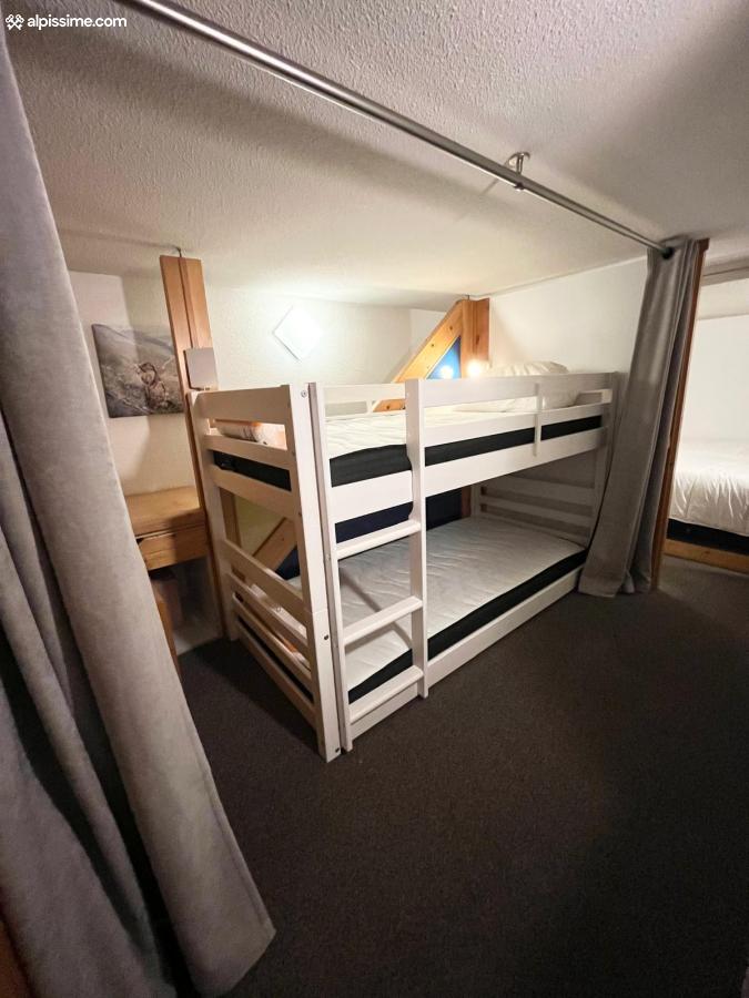 La mezzanine propose 6 couchages dont 1 chambre parentale, séparée par une cloison et porte fermant la pièce, un coin montagne avec lits gigogne et un autre espace nuit avec 2 lits séparés (possibilité de les rapprocher).