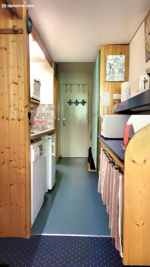 - La cuisine donne sur la pièce de vie accueillant un canapé-lit et un lit simple, la pièce de vie donne sur un balcon sans vis-à-vis