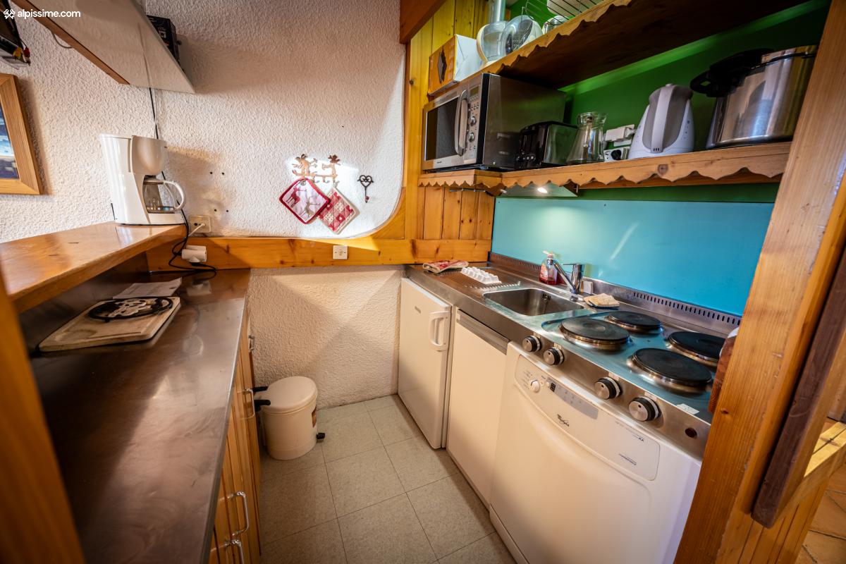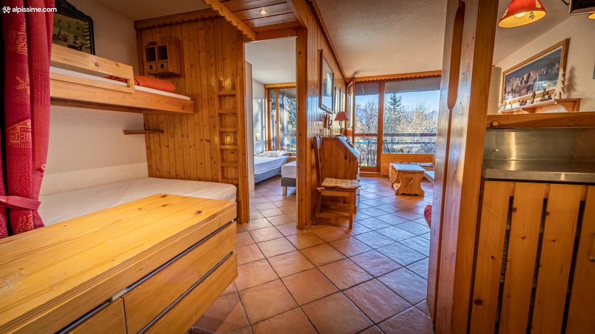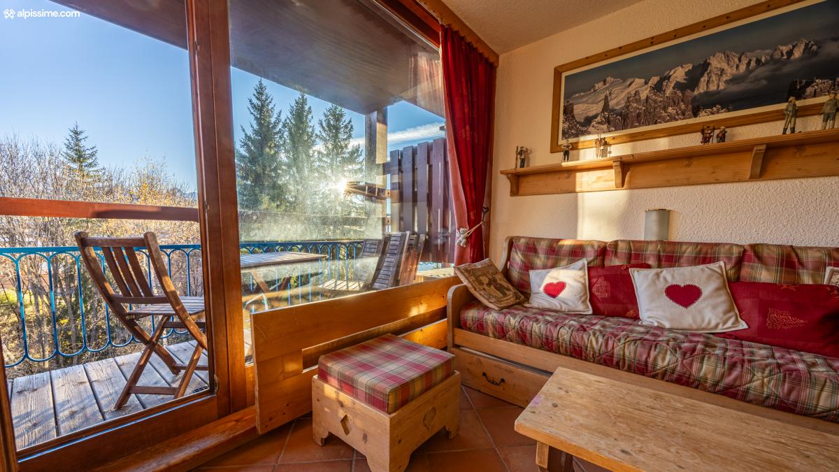 - Un séjour avec cuisine ouverte sur le salon (canapé-lit gigogne), balcon avec vue sur la tarentaise.