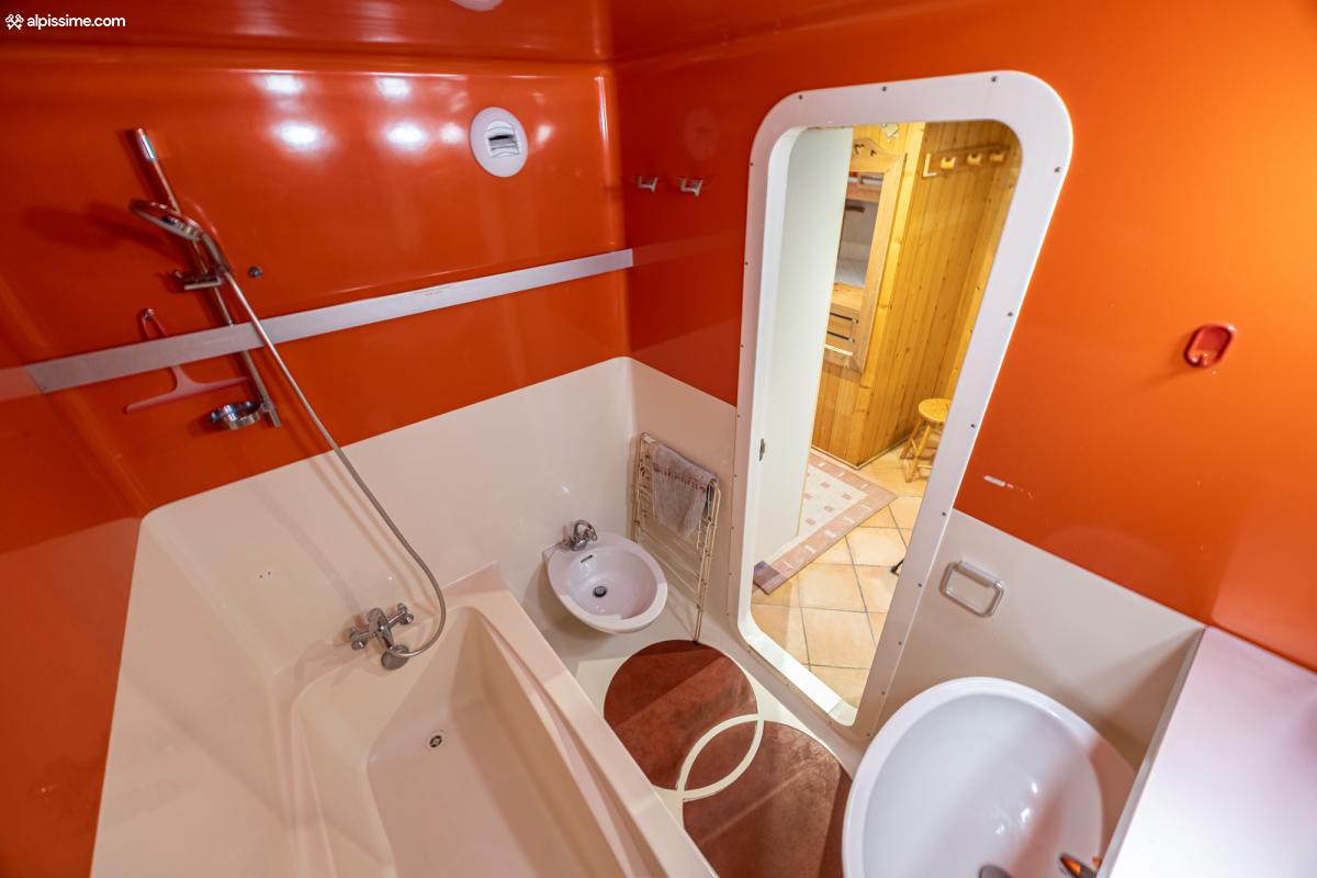 - Lit double en coin montagne permettant de coucher 5 personnes sans utiliser le canapé-lit du salon