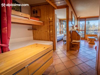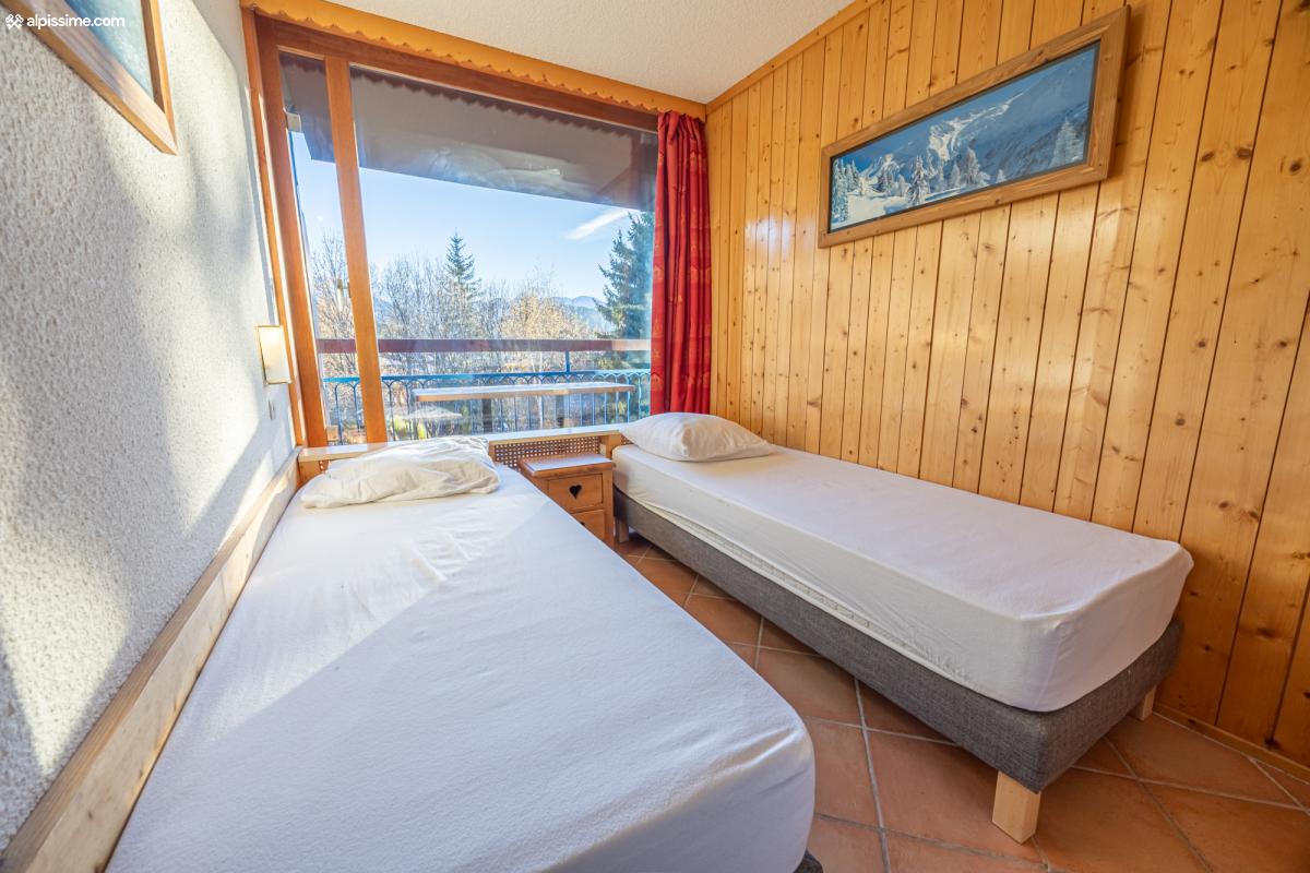 - Un coin montagne avec un lit simple superposé à un lit double