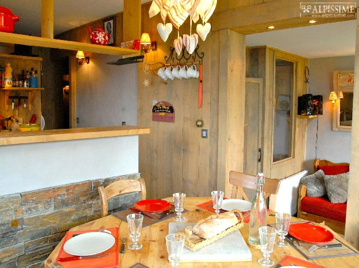 Résidence LE GRAND ARBOIS. Rénovation totale de 2 appartements réunis pour vous offrir de belles pièces à vivre, salon ouvert sur salle à manger, cuisine américaine, très calme, décoration soignée ambiance chalet, en plein cœur de la station. Vue exceptionnelle sur la vallée et coucher de soleil, exposition sud-ouest.