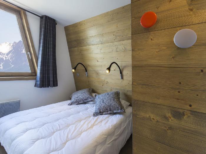 Chambre 1 avec fenêtre, 1 lit double (160), TV écran plat – Chambre 2 avec vélux, 2 lits simples pouvant être rapprochés pour faire un lit double (160x200) - Séjour donnant sur balcon avec canapé lit gigogne avec lit tiroir 1 personne (0,90x190), coin repas avec table modulable de 1,4 à 2 m, TV écran plat, DVD, mini-chaîne. Cuisine entièrement équipée.Grand balcon, en décrochement par rapport aux autres appartements, plein soleil, panorama exceptionnel à 180°, du Mont Blanc à la vallée de Bourg Saint Maurice