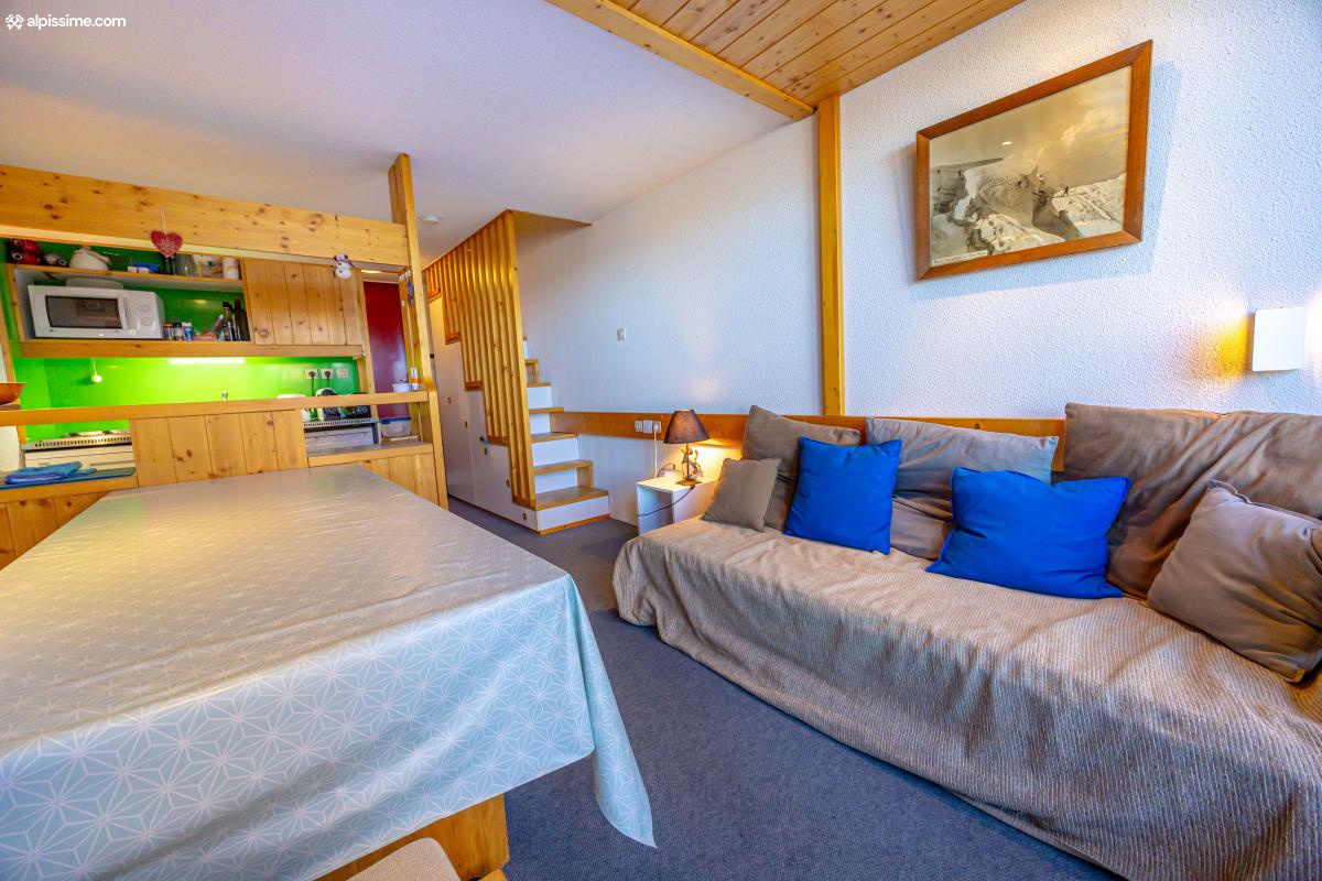 Séjournez dans ce charmant duplex de 40 m2 situé au pied des des pistes, dans la résidence Aiguille Grive 3 à Arc 1800.