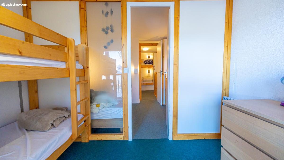 - A l'étage, un coin montagne et deux chambres communicantes accueillant jusqu'à 6 personnes (2x2 lits superposés, 1 lit double)