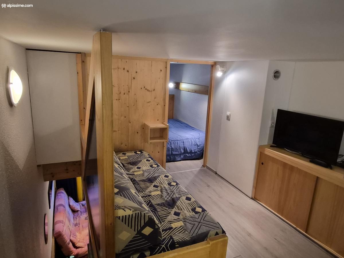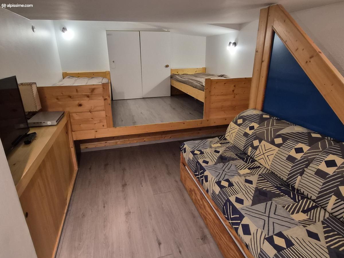 Mezzanine avec chambre indépendante comprenant 2 lits simple accolés et dans l'autre partie, 2 lits simples et 1 canapé lit (tiroir)