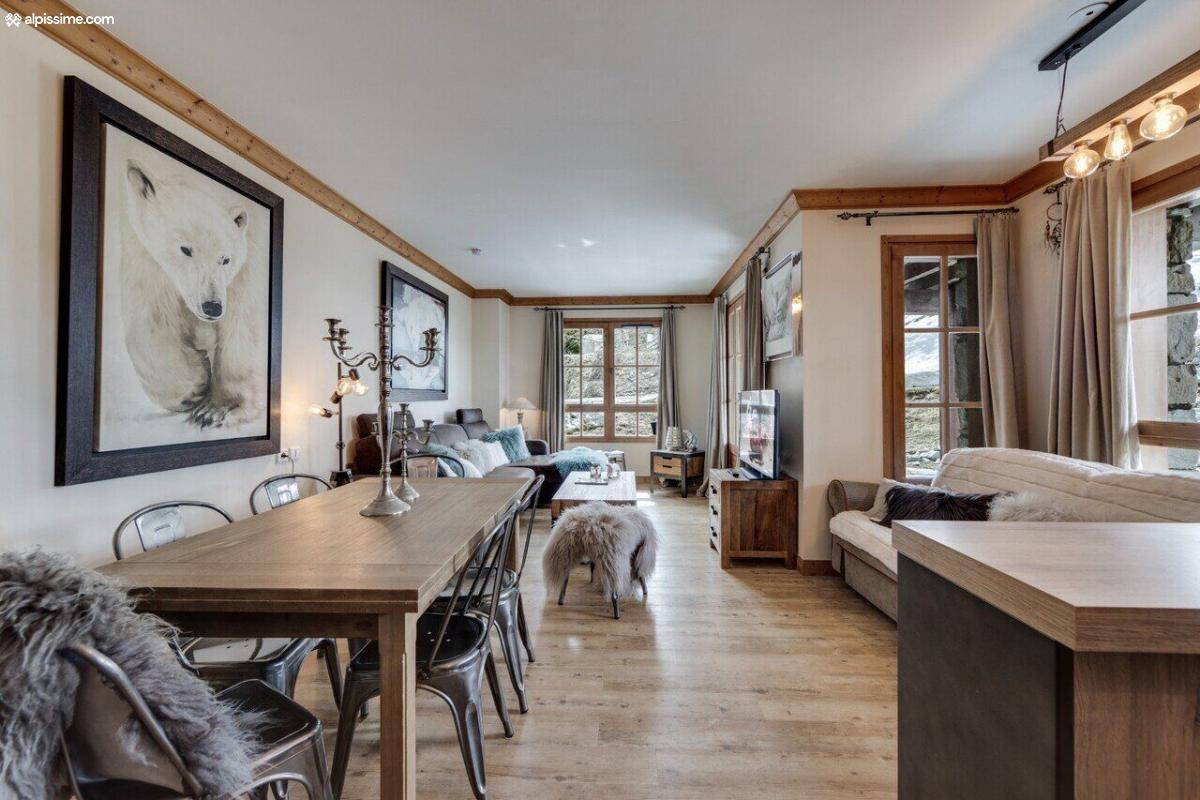 Arc 1950, appt idéal 6pers. entièrement équipé, orienté plein sud avec une terrasse en angle en RDJ. Accès direct par ascenseur à la piscine extérieure/intérieure chauffée.Cet appartement situé dans la résidence Prince des Cîmes propose une suite parentale (lit de 160) avec salle de bains et wc, une chambre indépendante avec 2 lits de 90, une salle d'eau et un wc indépendant. Ces pièces sont séparées de la pièce principale par un grand couloir ( 2 portes) . La pièce de vie avec son coin cuisine équipée ( LV, Four, grand réfrigérateur congélateur et plaques électriques...) donne sur la grande terrasse extérieure en RDJ.2 canapés lits de 2 couchages sont disponibles dans la pièce principale(3 SMARTVHD wifigratuit).casier à skis pour 6 équipements est disponible .Parking couvert est payant.POSSIBILITE DE LOUER L'APPARTEMENT MITOYEN 6 COUCHAGES-LOCATION A LA SEMAINE UNIQUEMENT