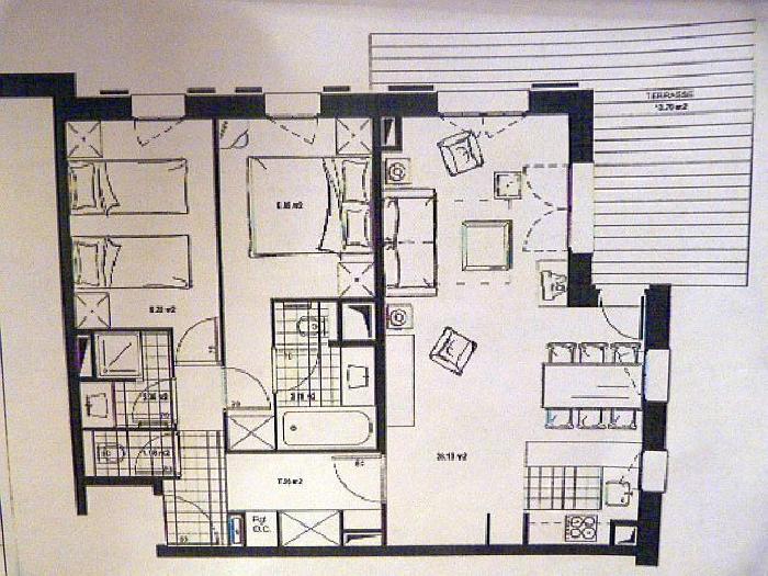 Appart luxueux sud 65m2 en angle-6 pers- terrasse 20m2