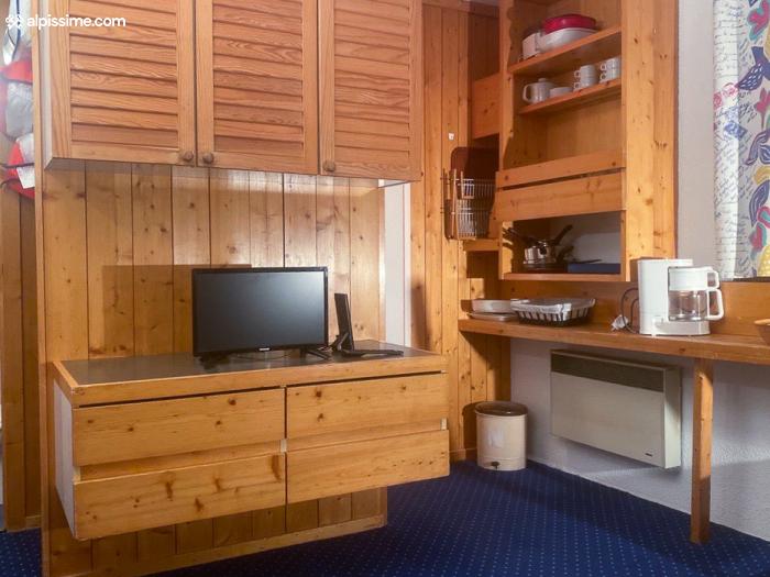 Séjournez dans cette studette pour 2 pers. toute équipée située au pied du front de neige, à deux pas du départ des pistes et en plein coeur de station.