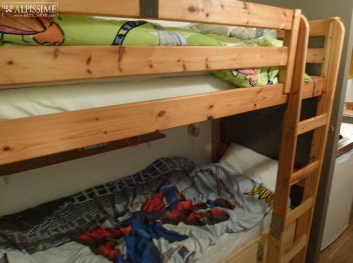 Entrée coin montagne avec 2 lits superposés fermé par porte coulissante