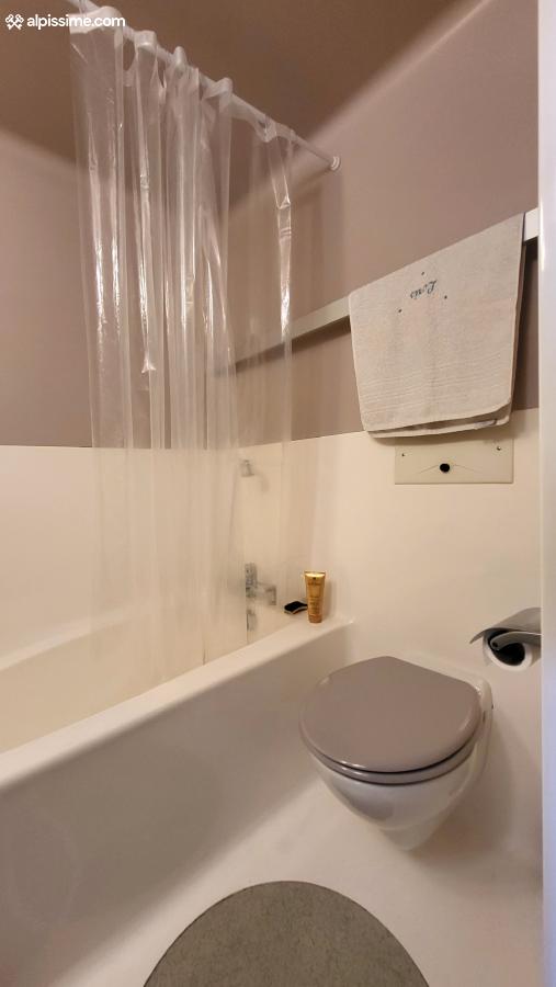 - Une salle de bain avec baignoire et WC