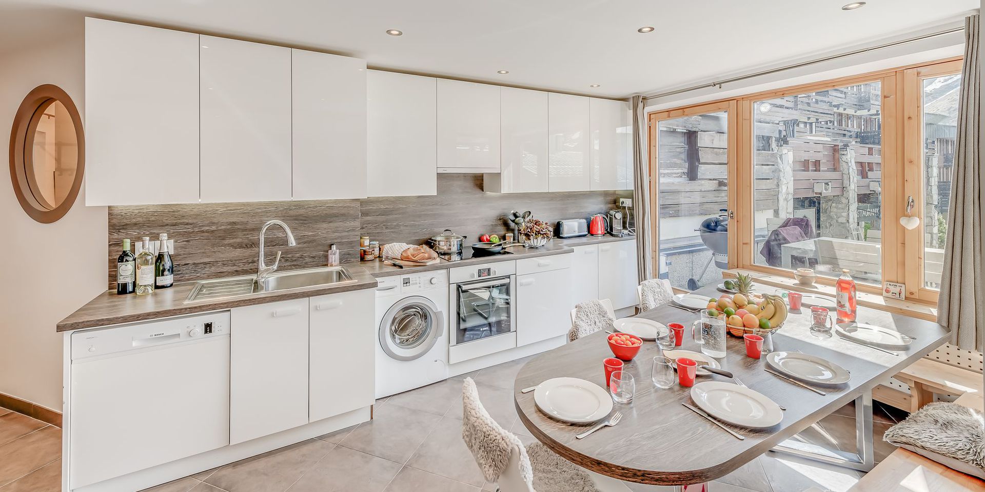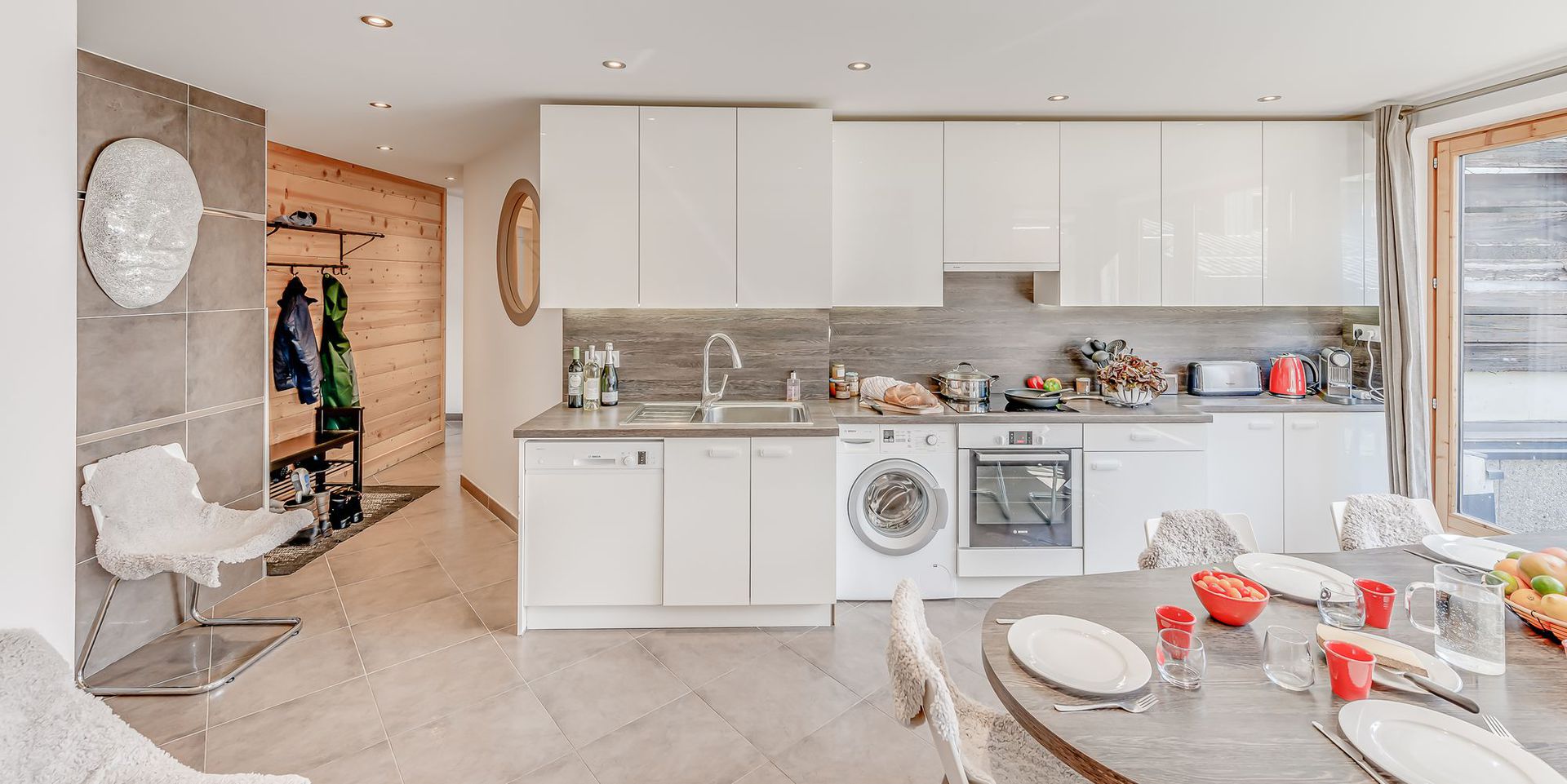 Grande cuisine moderne et équipée, ouverte sur le séjour: 4 plaques INDUCTION, réfrigérateur avec partie congélateur, lave linge, lave vaisselle, micro-onde, grille pain, bouilloire, machine à café Nespresso