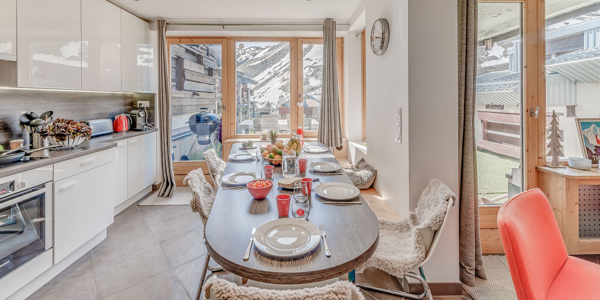 Grande terrasse de 25m² Sud et balcon Nord AVEC UNE vue ample et circulaire sur les pistes et les montagnes de TIGNES.