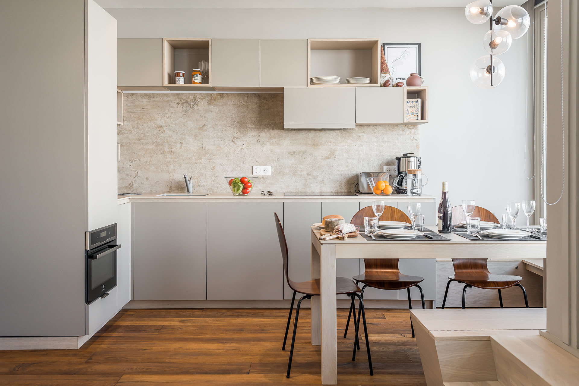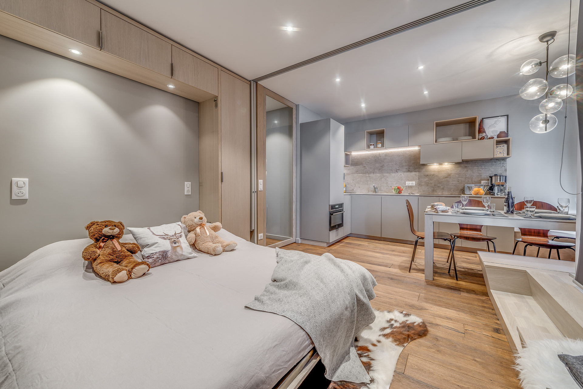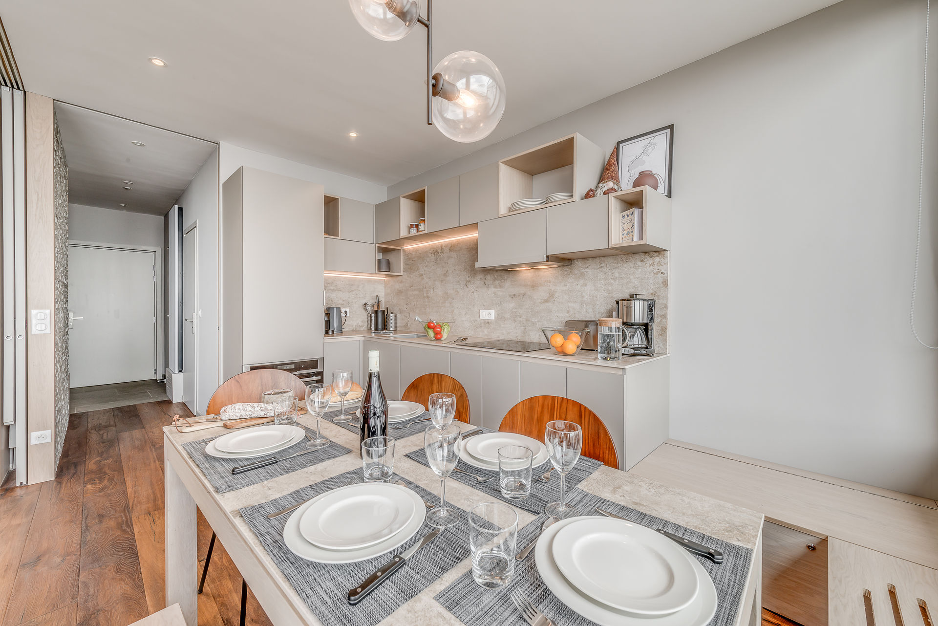 1 cuisine ultra moderne et equipee : Table de cuisson a induction (3 feux), Refrigerateur - Congelateur toute hauteur, Four multi-fonctions, Lave-vaisselle.