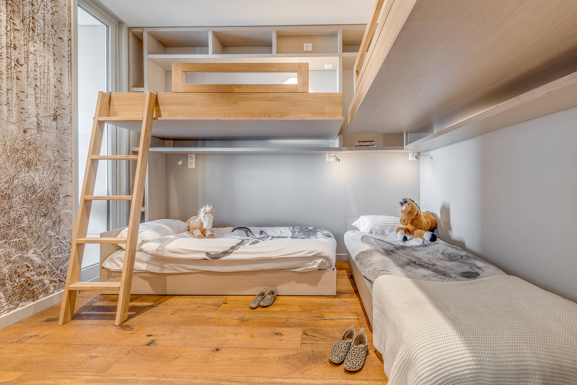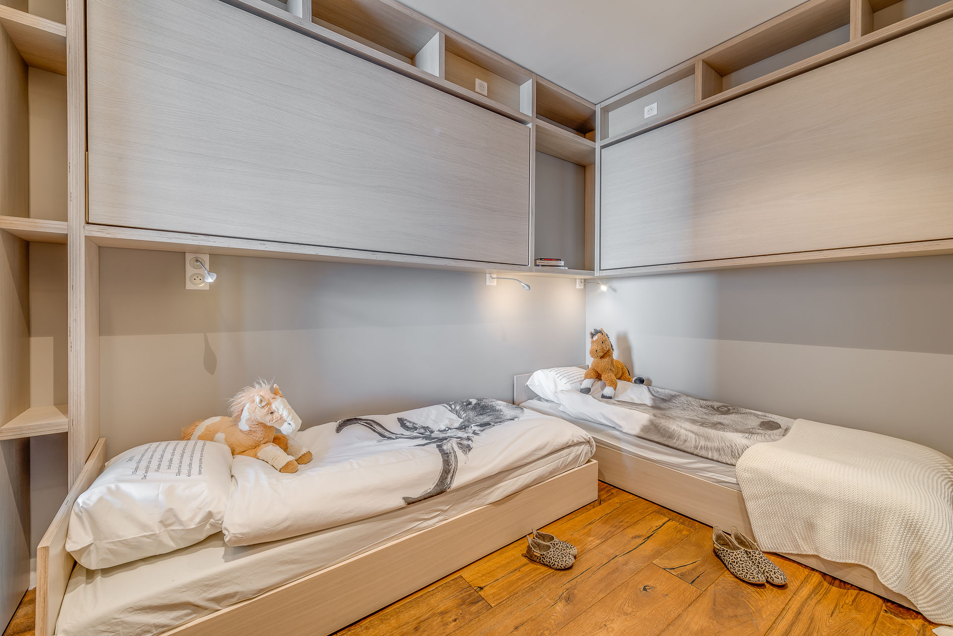 * 2 lits rabattables dans la cloison, situes en position superieure (2 couchages).