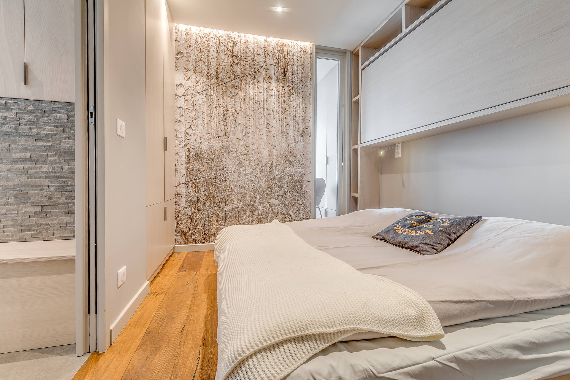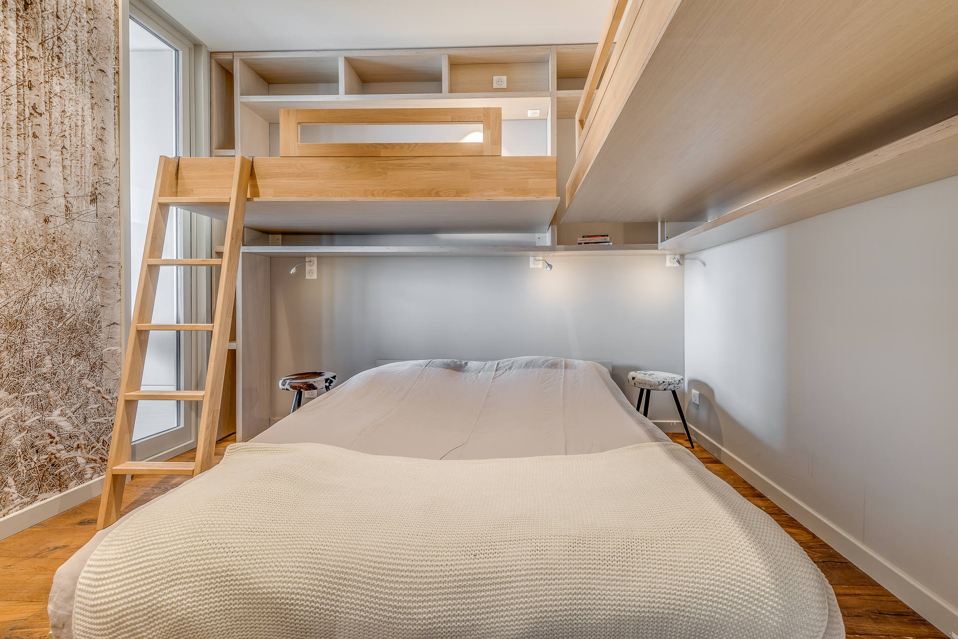 * 1 lit double rabattable (160 x 200) en journee dans la cloison.