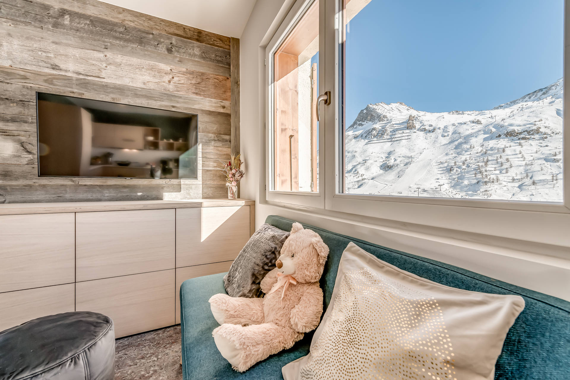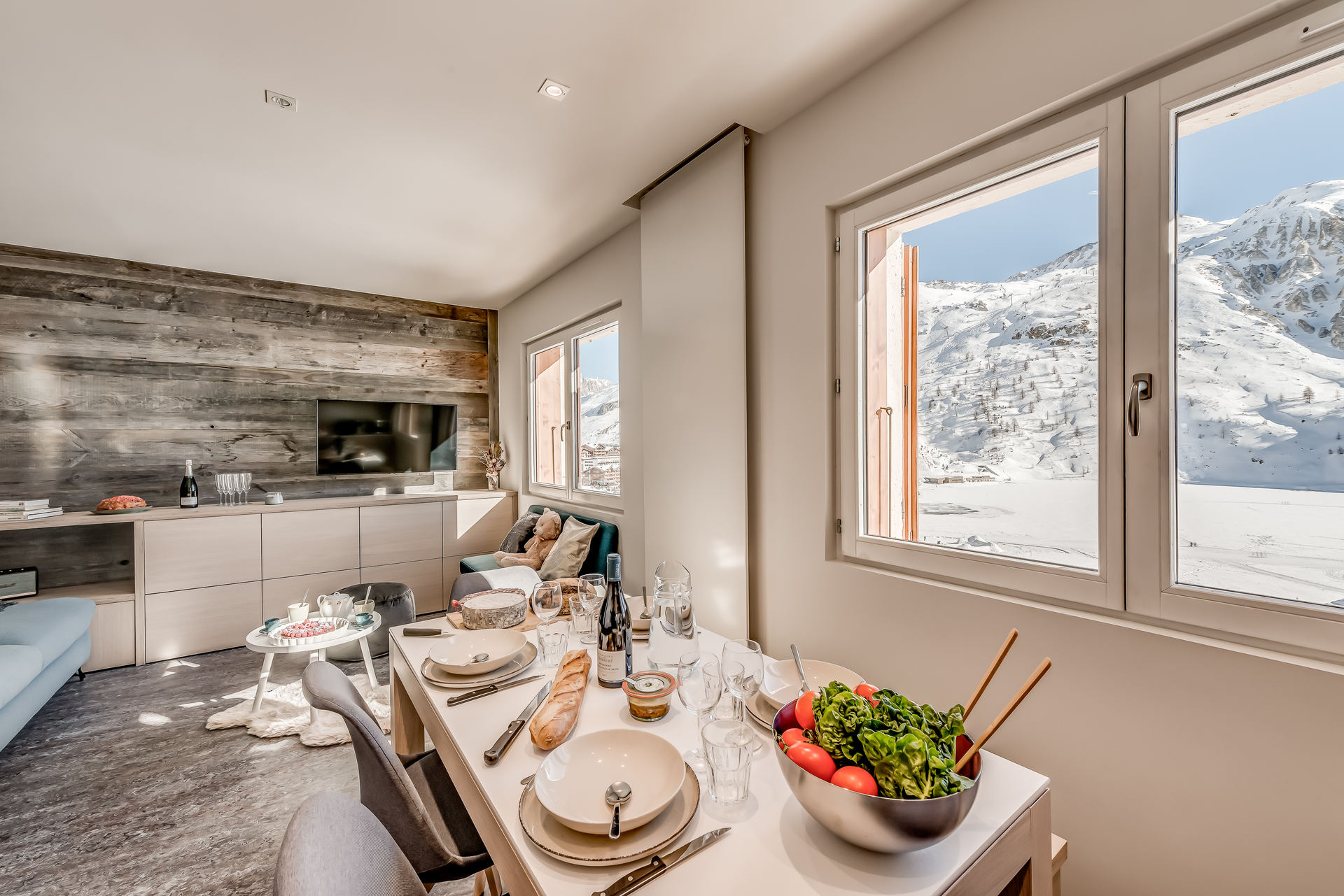 l'appartement beneficie d'une vue superbe sur le lac, Toviere et le glacier de la Grande Motte.