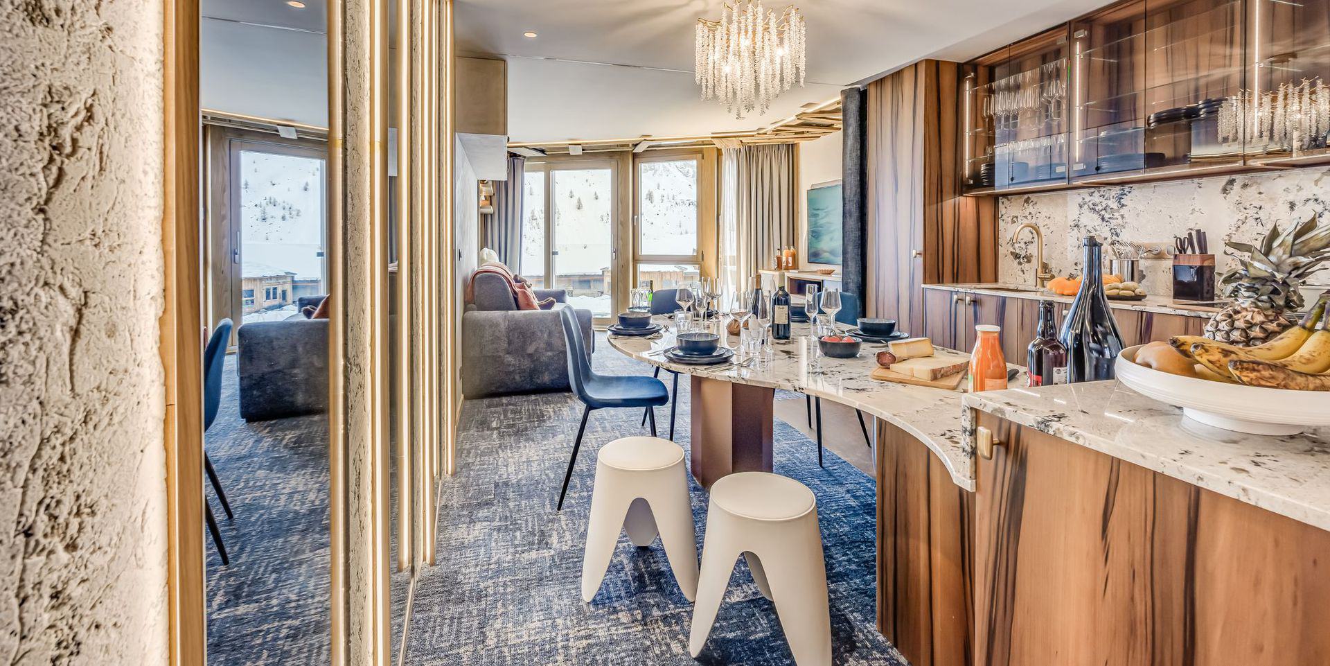 PALAFOUR 102 - "LE GRAND BLEU" a fait l'objet d'une renovation complete de mai a octobre 2025. Il est devenu un tres beau bien de vacances, finement travaille au niveau de ses espaces, de ses equipements et de ses matieres (vitrages, miroirs, tables de pierre, moquettes bleutees, TV connectees, enceintes de sonorisation...) qui capte la lumiere du Lac de TIGNES, et la fait entrer jusque dans les pieces arrieres.