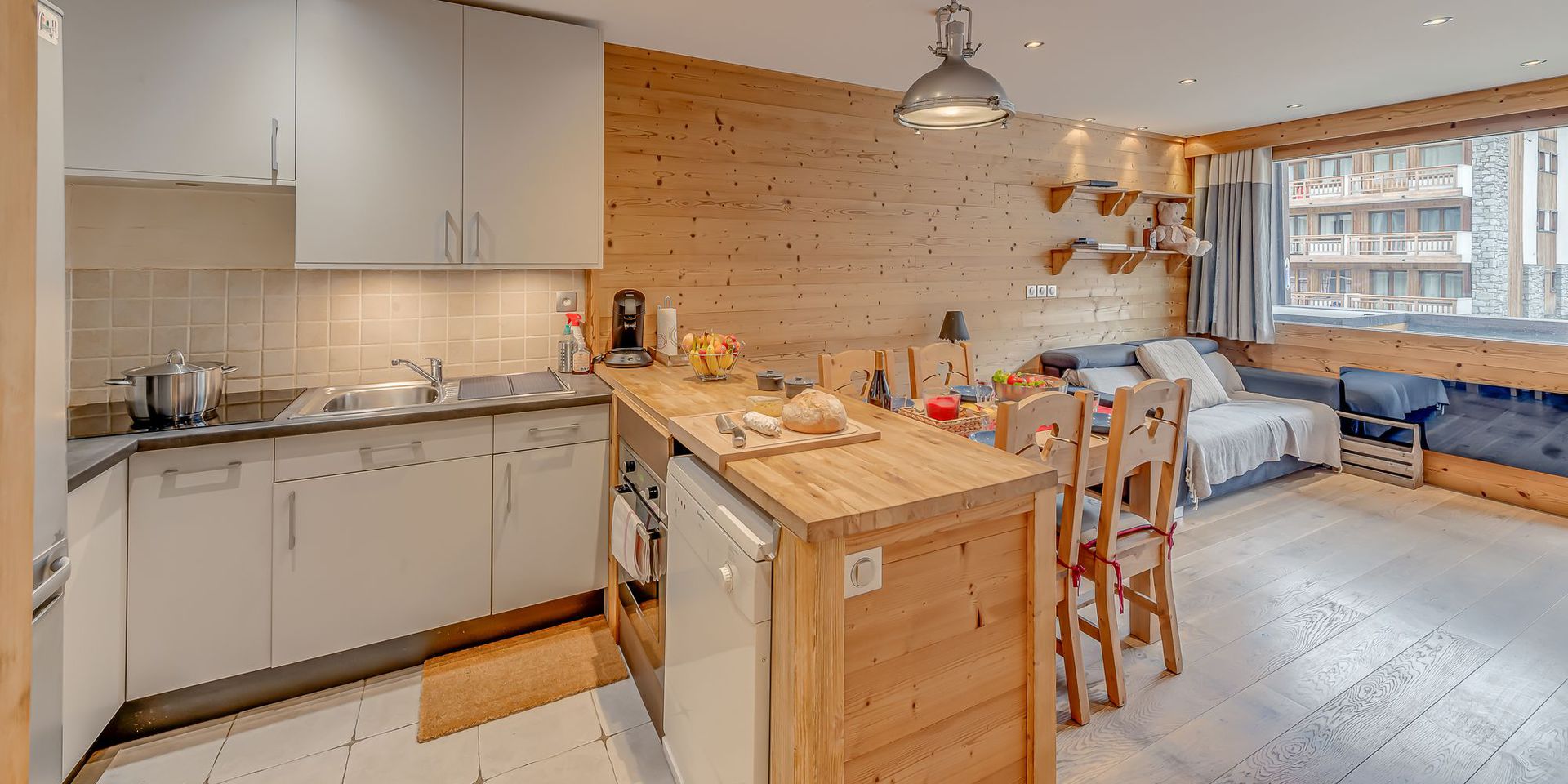 - 1 Cuisine ouverte sur le sejour avec refrigerateur, table de cuisson vitroceramique, four, micro-ondes, lave-vaisselle