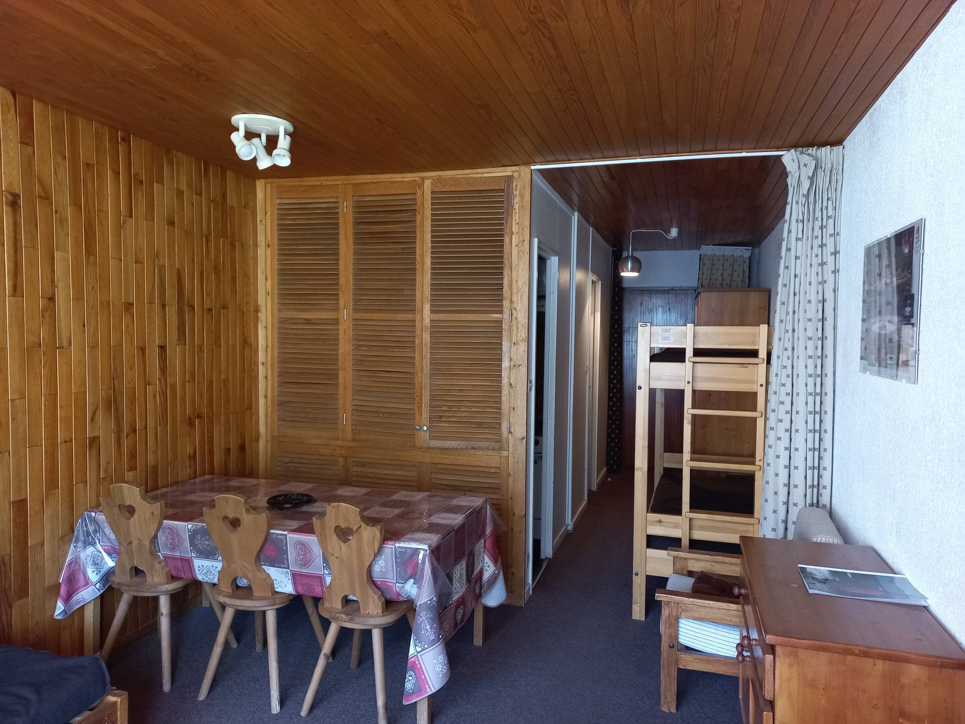 Entrée : deux lits superposés fixes (séparation rideaux).