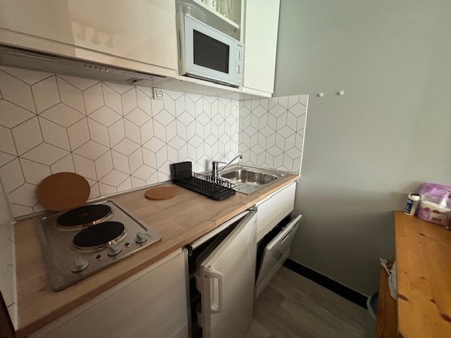Cuisine : micro-onde, réfrigérateur et lave-vaisselle.