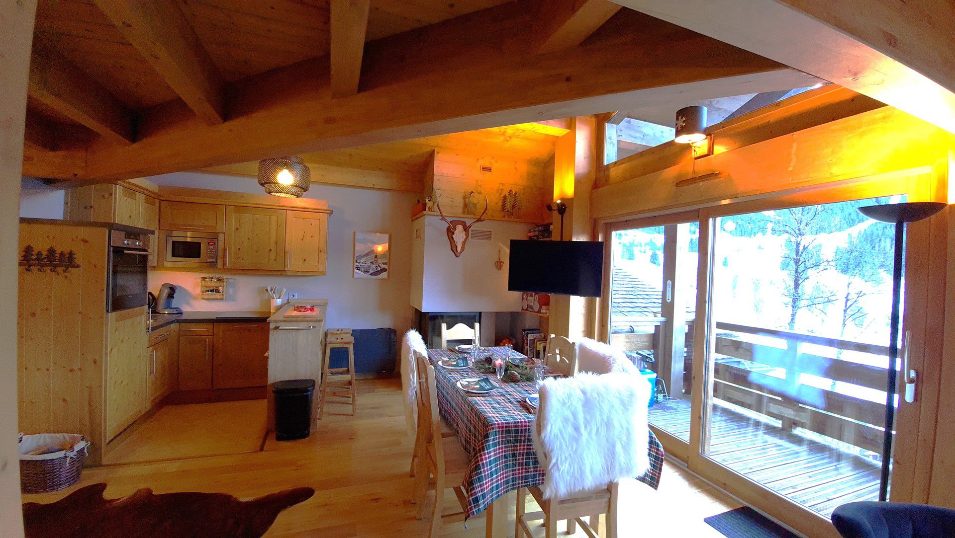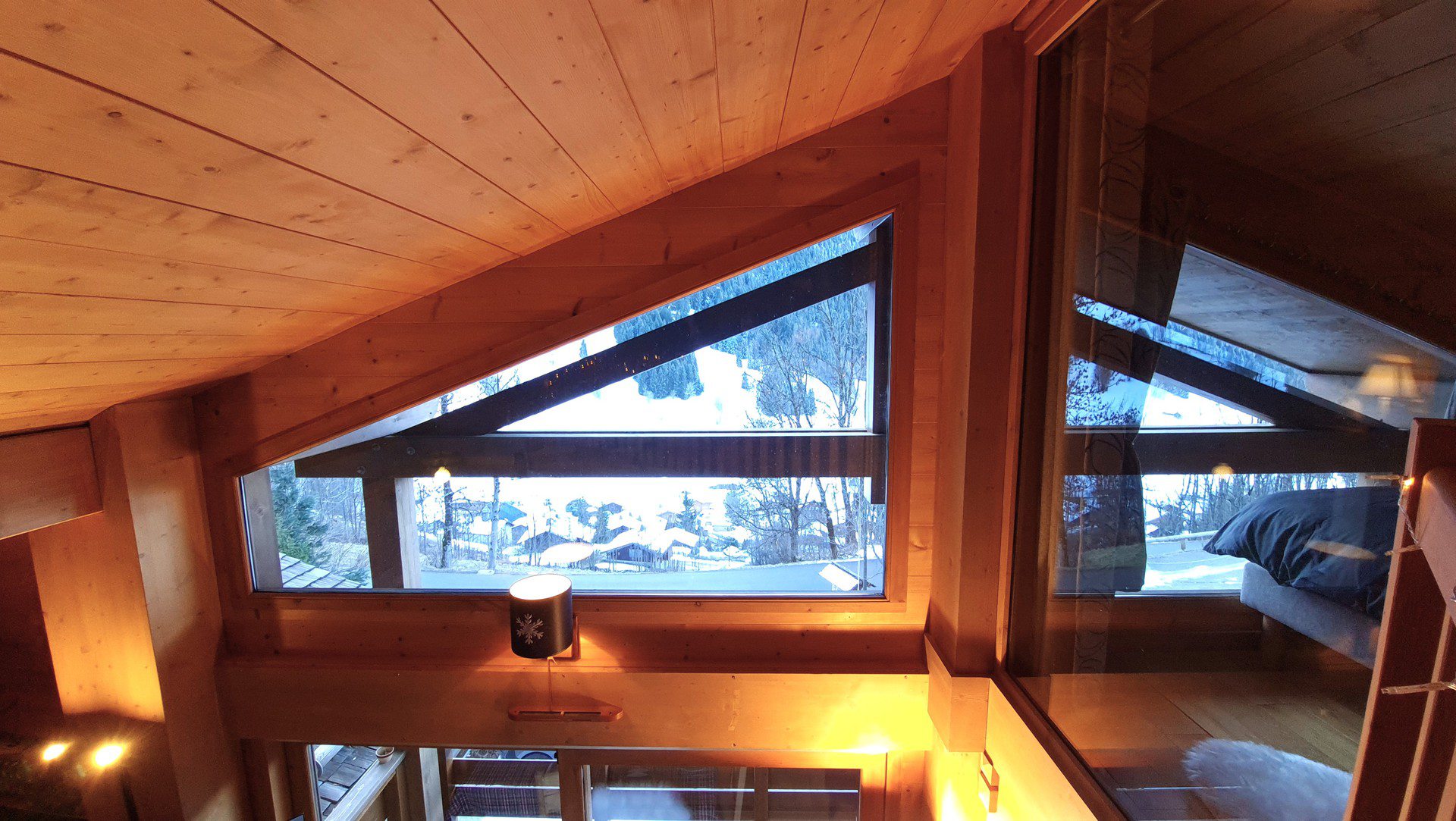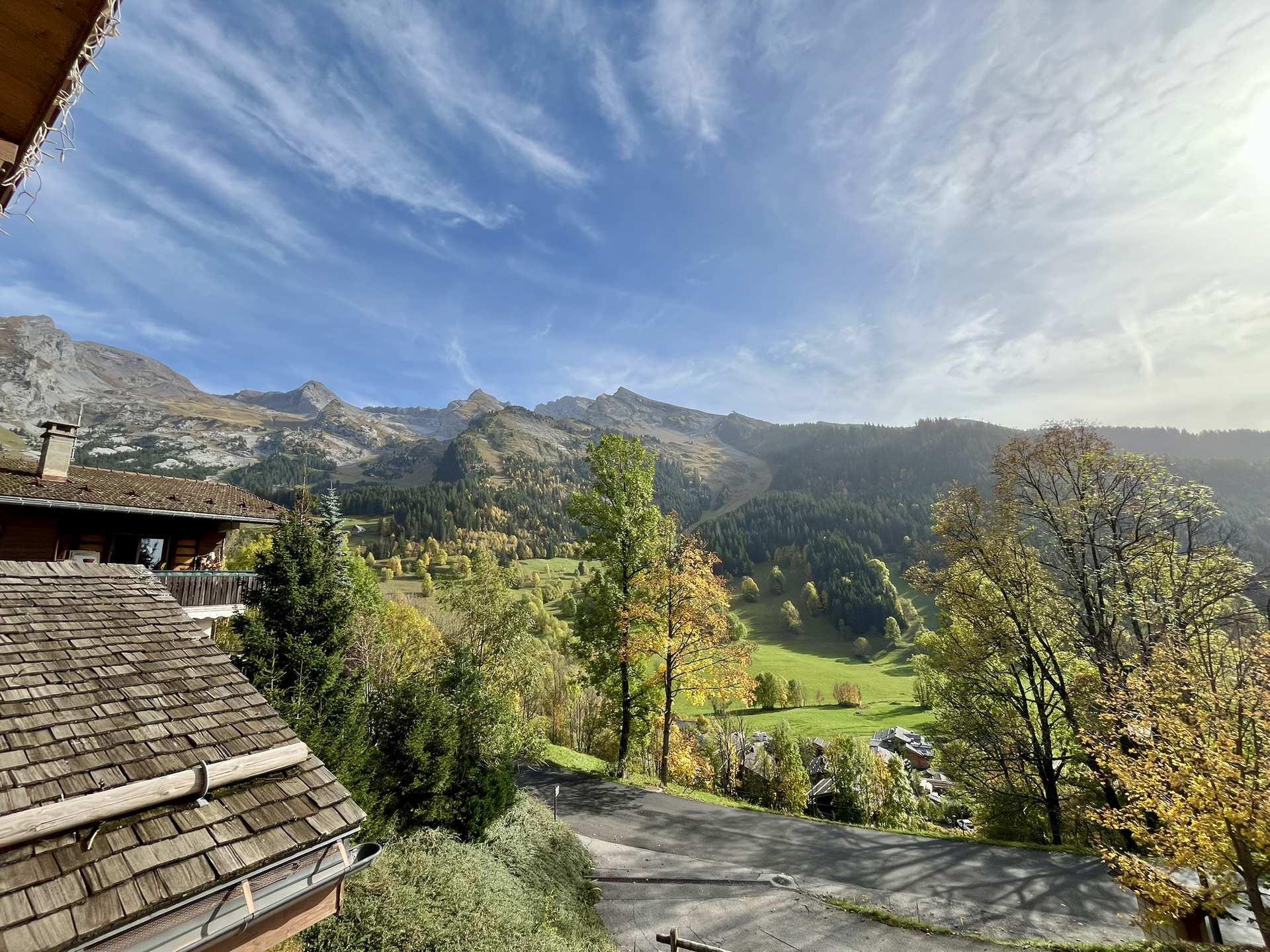 Etage superieur : Coursive ouverte sur sejour - Chambre 2 (10m2) : 1 lit double, velux - Chambre 3 (7m2) : 2 lits, fenetre sud vue pistes - wc avec lave mains - Placard avec lave-linge.