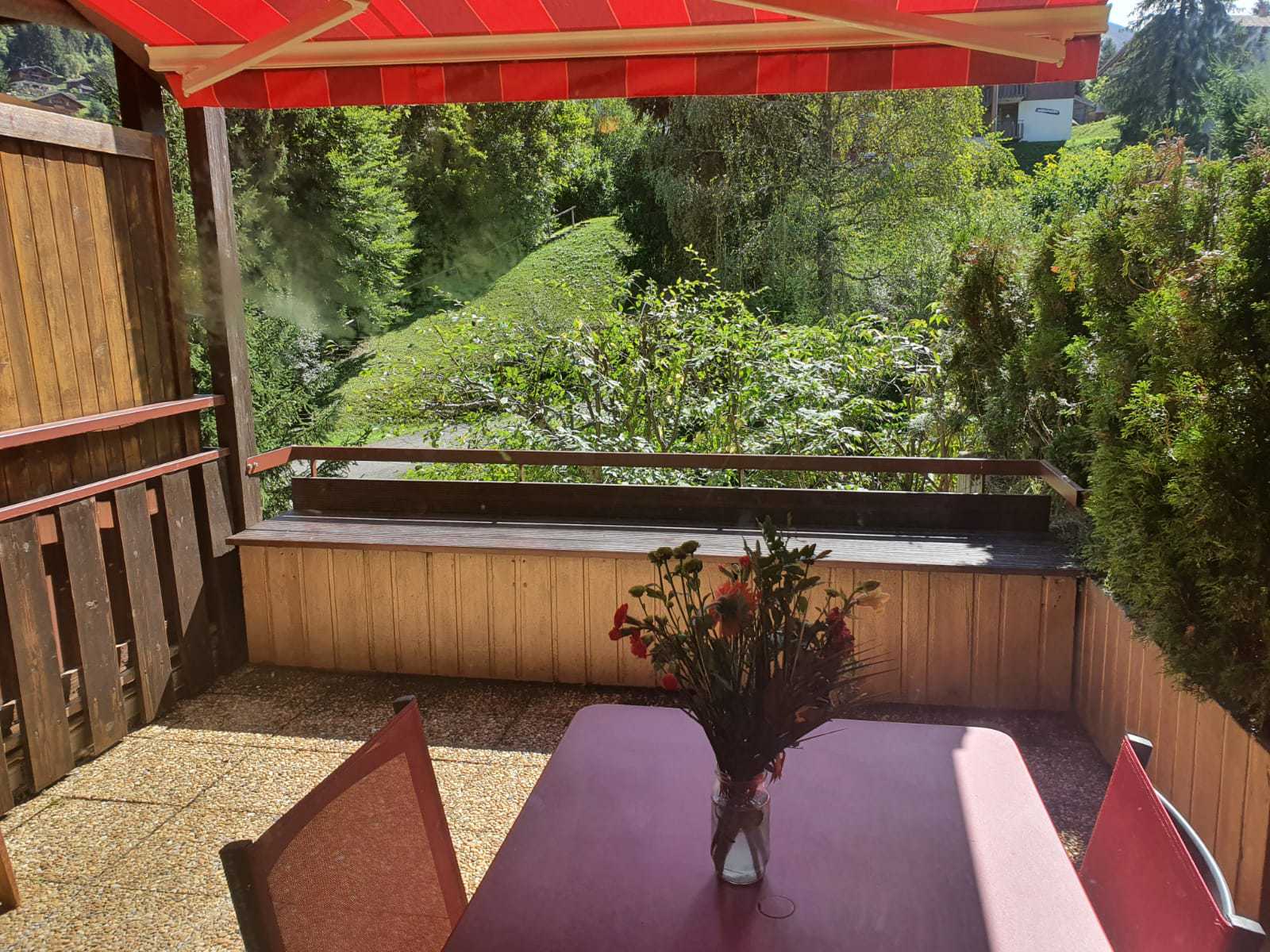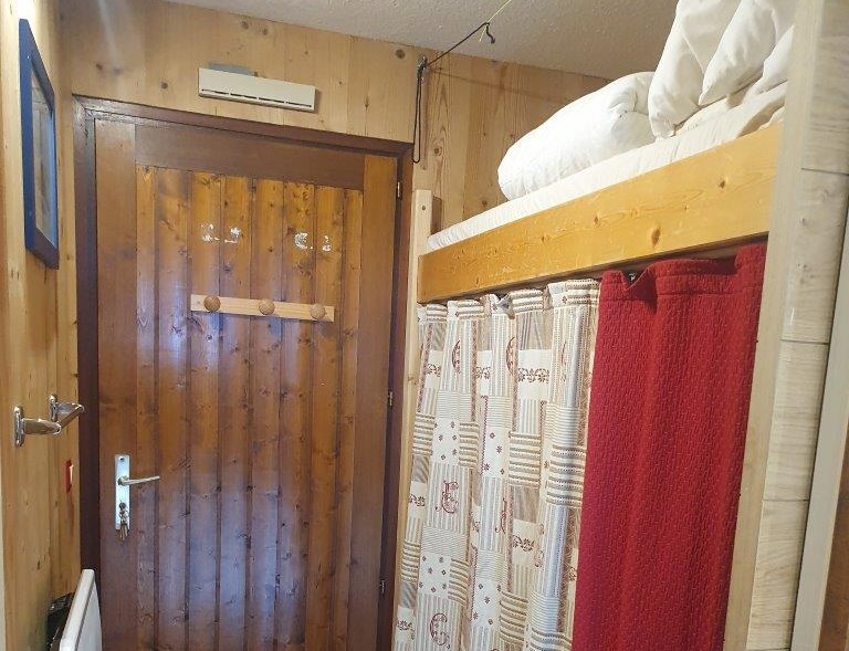 Hall - Coin nuit ferme par porte coulissante (3 m2): Lit, fenetre nord sur coursive - Rangements + penderie, Salle de bains : Douche, lavabo - wc -Sejour (15 m2) avec Coin repas : Table, chaises - Coin salon : Television, canape, baie vitree acces terrasse sud (10 m2) vue sur l'Etale - Coin cuisine equipee: Four, refrigerateur (80L), micro-ondes, hotte, 4 plaques electriques, lave-vaisselle, placards.