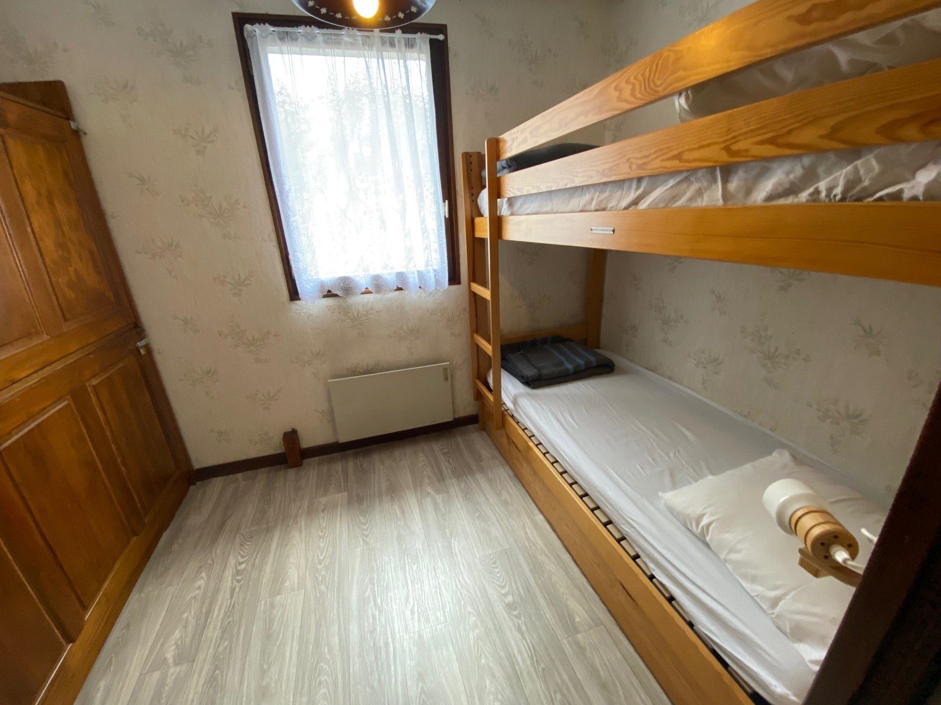 - Chambre : 2 lits superposes en 80 pour 2 personnes + 1 lit en 80 pour 1 personne