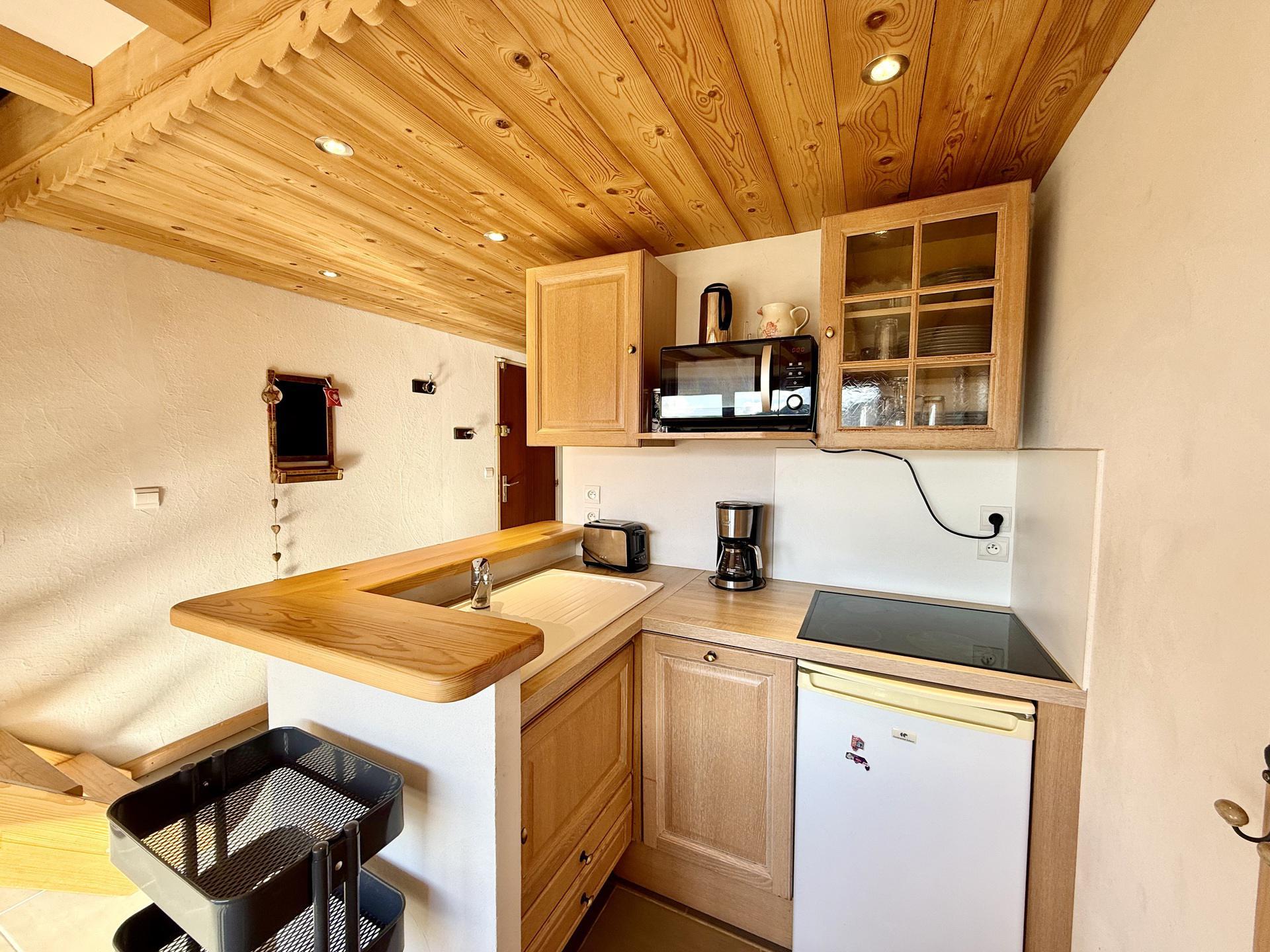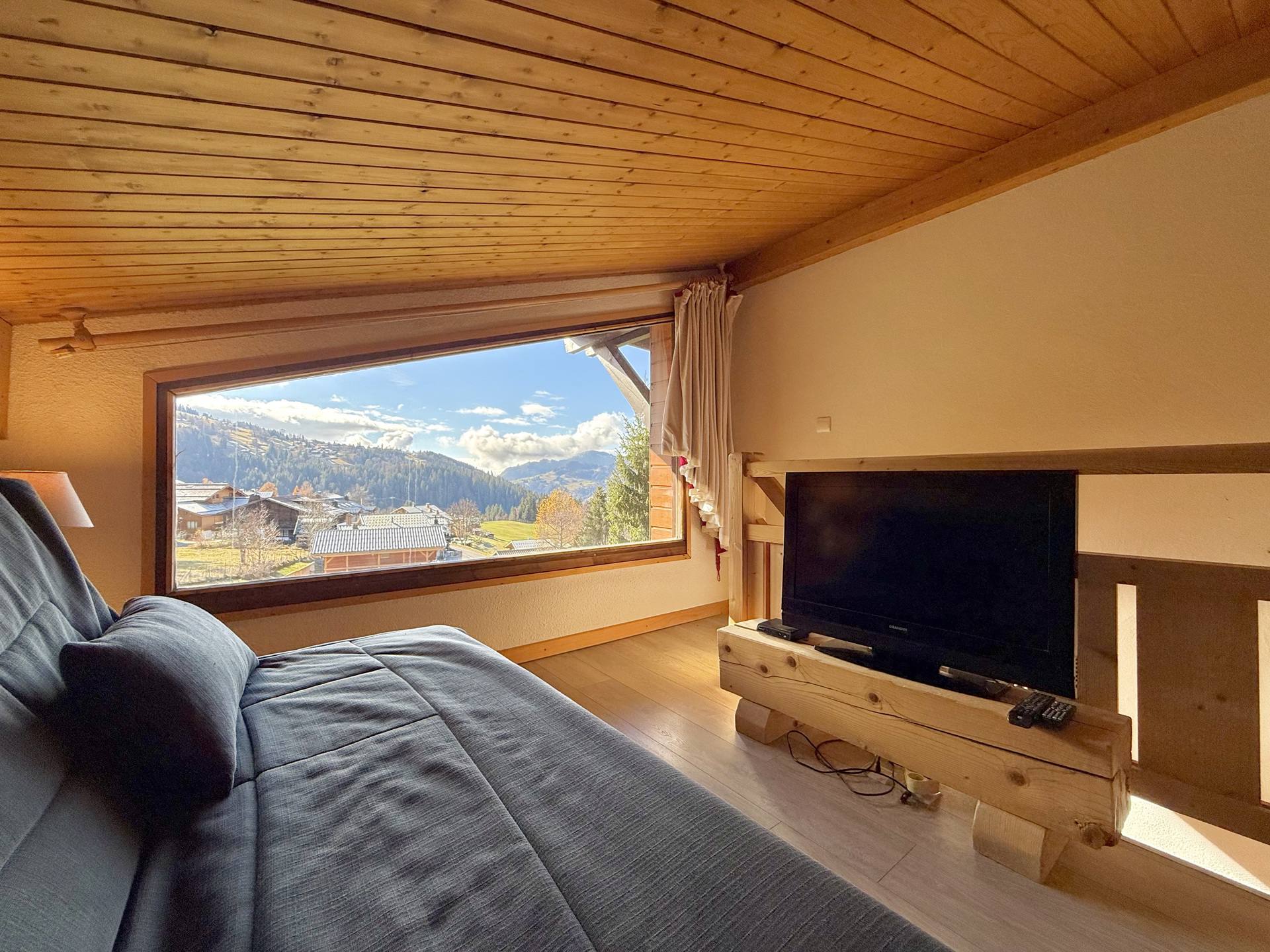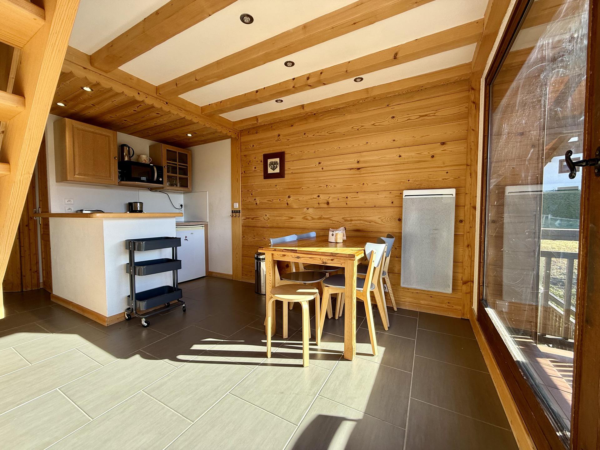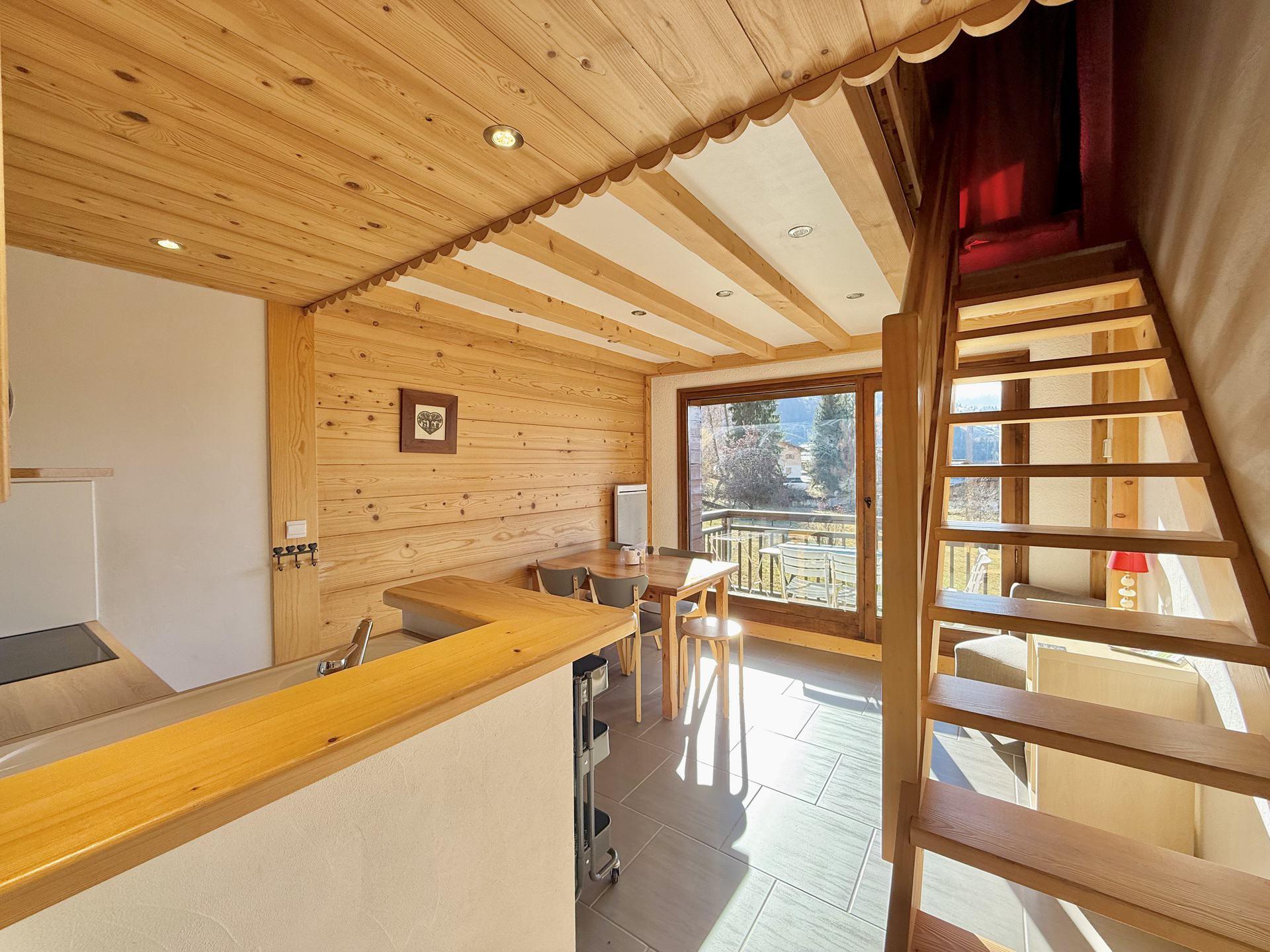 Charmant appartement duplex d'environ 37 m2 (dont 11.14 m2 > 1m80), alliant confort et convivialite, ideal pour accueillir 4 personnes. Situe au 3eme etage, il beneficie d'un agreable balcon expose Sud-Ouest avec vue sur le Mont Charvin, parfaite pour profiter du soleil tout au long de la journee et admirer de superbes couchers de soleil.